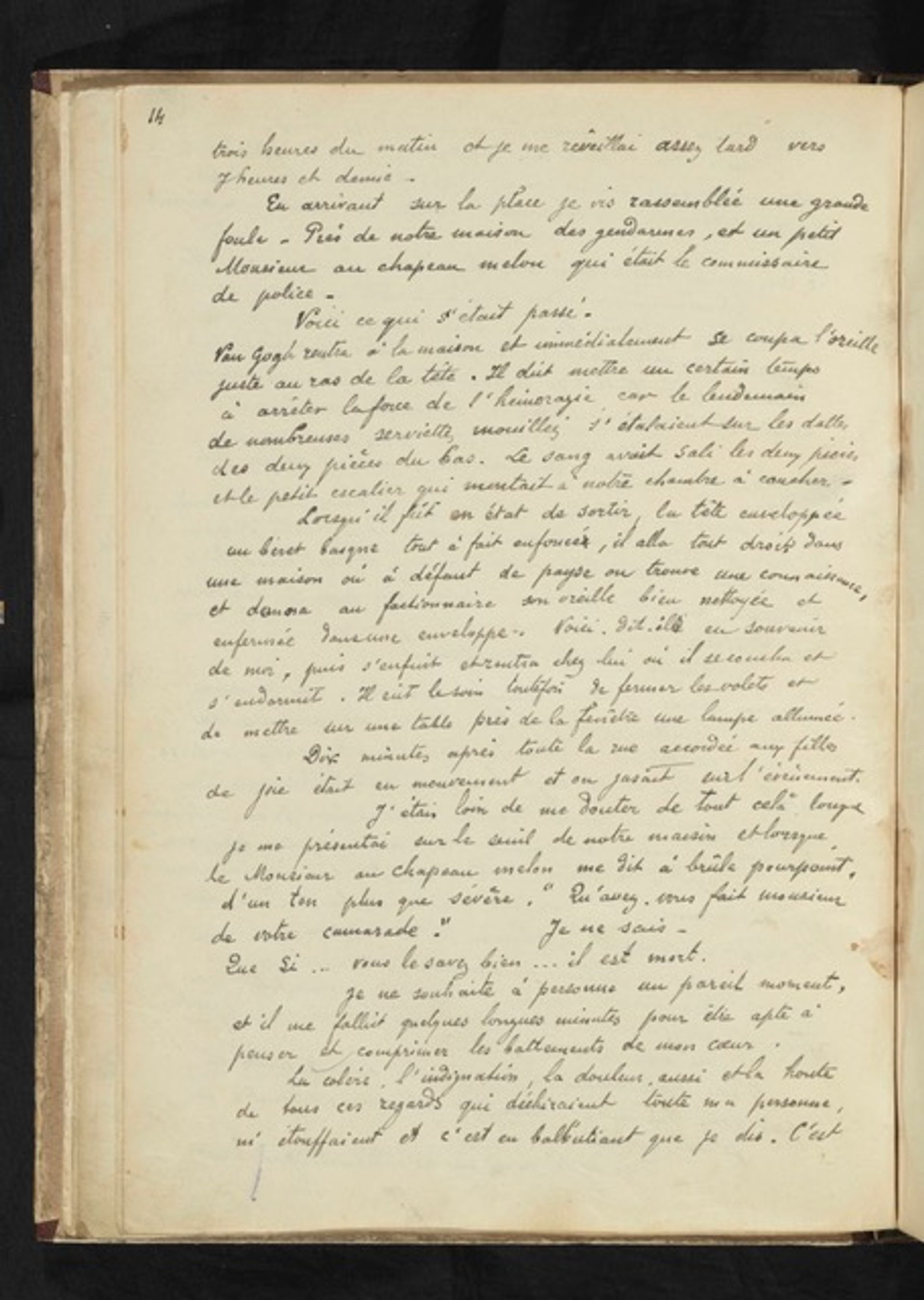 Gauguin’s account of the ear incident in Avant et Après, which starts seven lines from the top “Voici ce qui c’était passé…” (This is what had happened…) Courtesy of the Courtauld, London