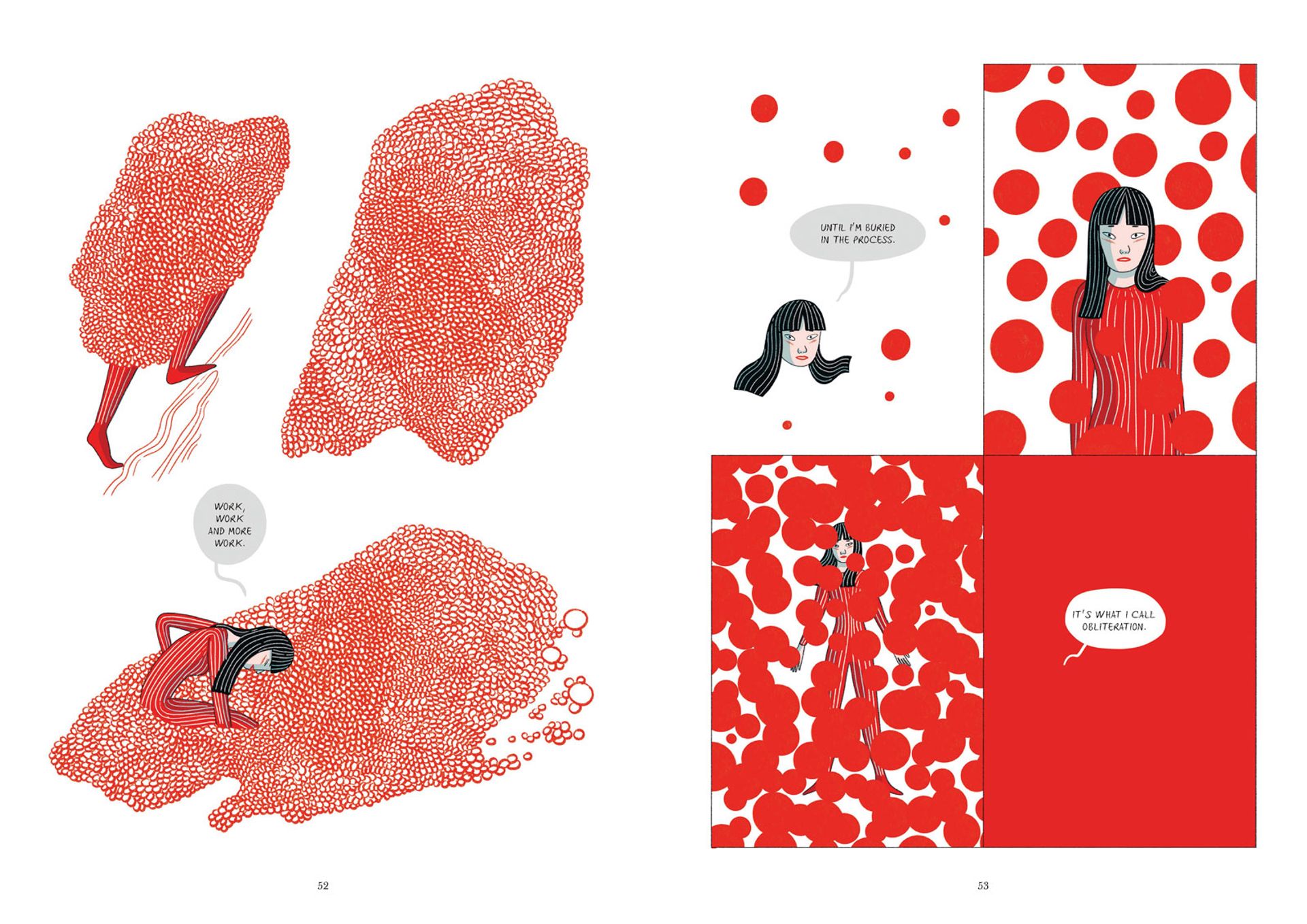 A spread from Kusama: The Graphic Novel by Elisa Macellari Courtesy of Laurence King
