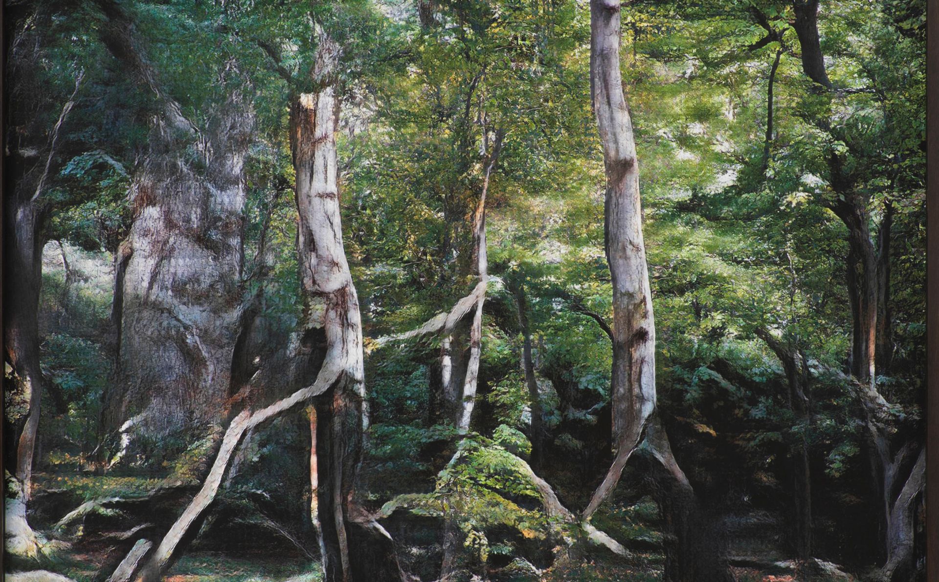 Andreas Greiner's Jungle Memory (until 1 November) fills Dittricht and Schlechtriem's basement gallery with an ersatz forest. Videos of artificial intelligence-generated images based on photographs of an endangered woodland in Lower Saxony accompany vertical pillars of real spruce. These bare, emaciated former trees have had their bark scraped off and heaped at their bases; wooden scaffolding merges into their forms. Offering a fake, digital vision of a forest, reminiscent of Romantic landscape paintings which depict nature as the great unknown to be conquered, alongside the starker reality of our exploits, Greiner emphasises the thorny, detrimental relationship between human creativity and ecology. Alongside the show, Greiner has also launched an initiative to plant a diverse forest in Lower Saxony, with a corresponding series of educational programs for the surrounding communities.