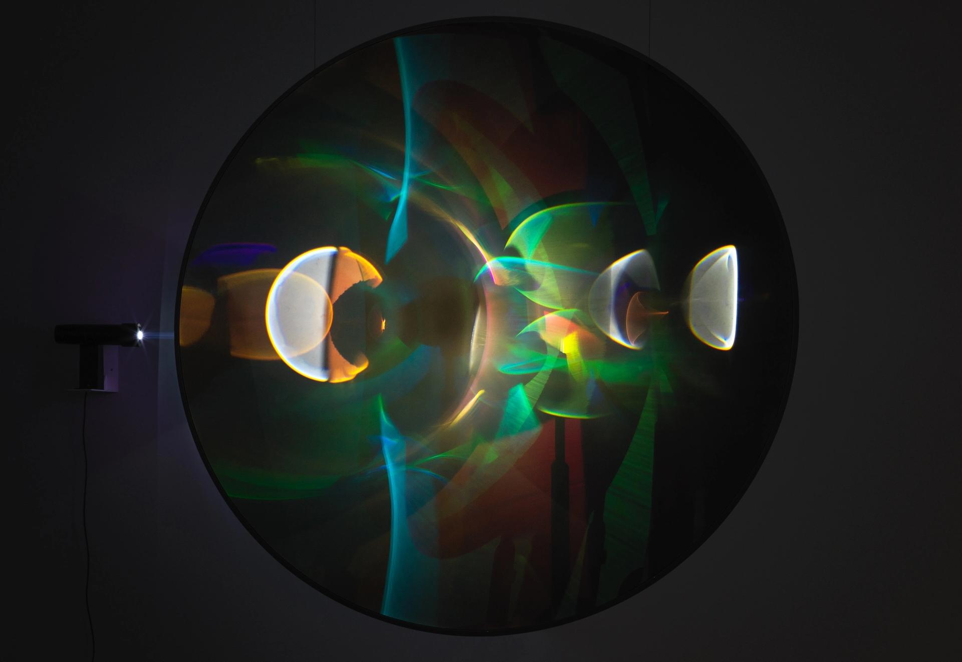 Few artists today make work as optically pleasing as Olafur Eliasson. Near future living light at neugerriemschneider (until 24 October) continues several threads of the megawatt Icelandic artist's practice, including experimentation in sensory perception and our relationship with the natural world. Most captivating is a new series of kaleidoscopic installations presented in a darkened room, which shine light onto angled mirrors and motor-driven lenses to project gently shifting coloured elliptical patterns onto the walls. If these works are read as rudimentary constructions of the human eye, then Eliasson asserts that what we are drawn to—the mesmeric, multi-coloured projection— is not visual phenomena itself, but our mind's wondrous perception of it. In a second room, plates of coloured sea glass are layered atop each other on a driftwood shelf—merging planes of pure colour together to create shades anew. Presented with overlapping realities, reliant on mere positioning, Eliasson makes clear the contingent nature of the visual world and the marvellous nature of our imaginative capacity.