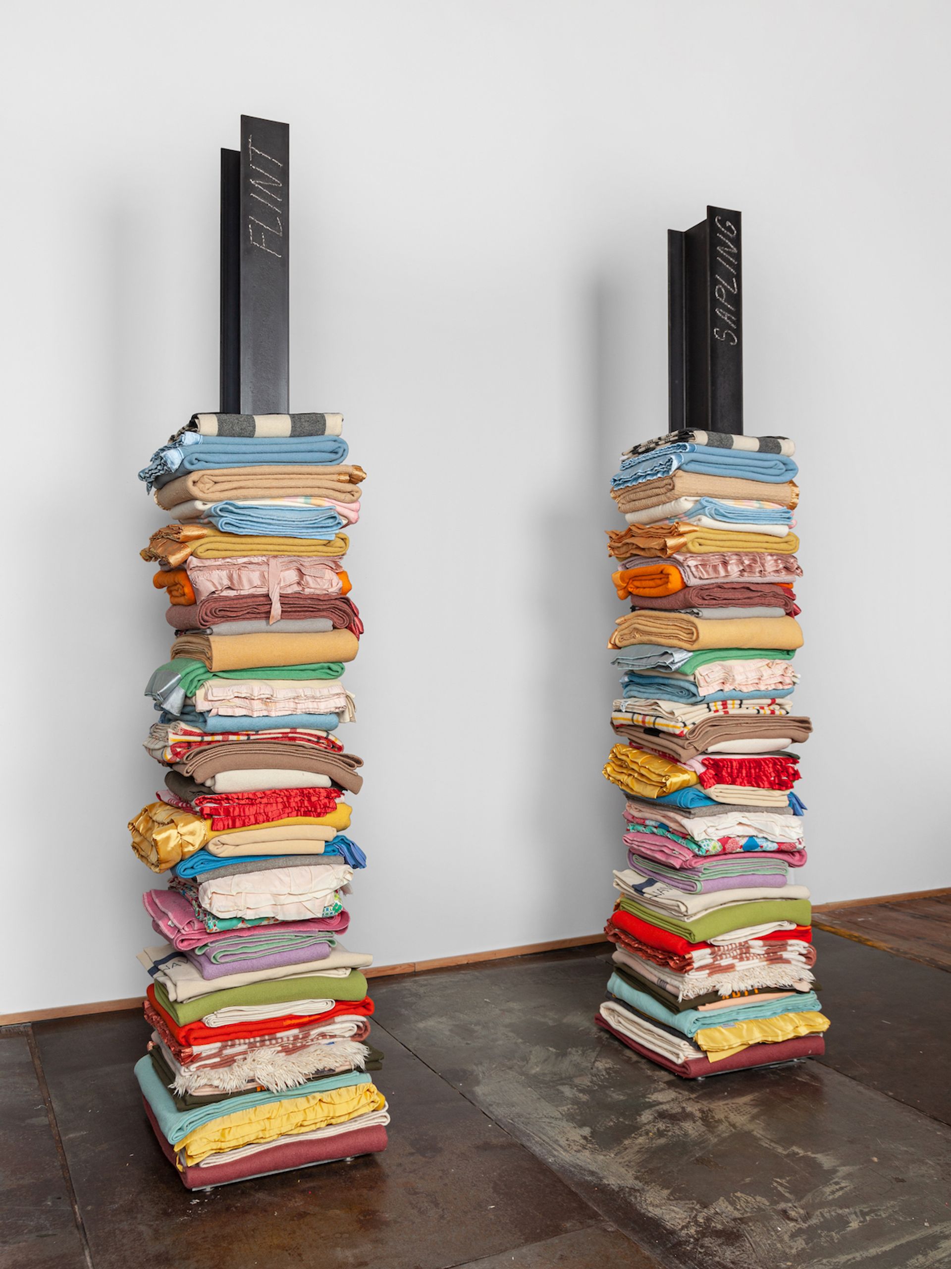 Marie Watt, Untitled (Sapling & Flint, Twin Columns) (2020) Marc Strauss Gallery