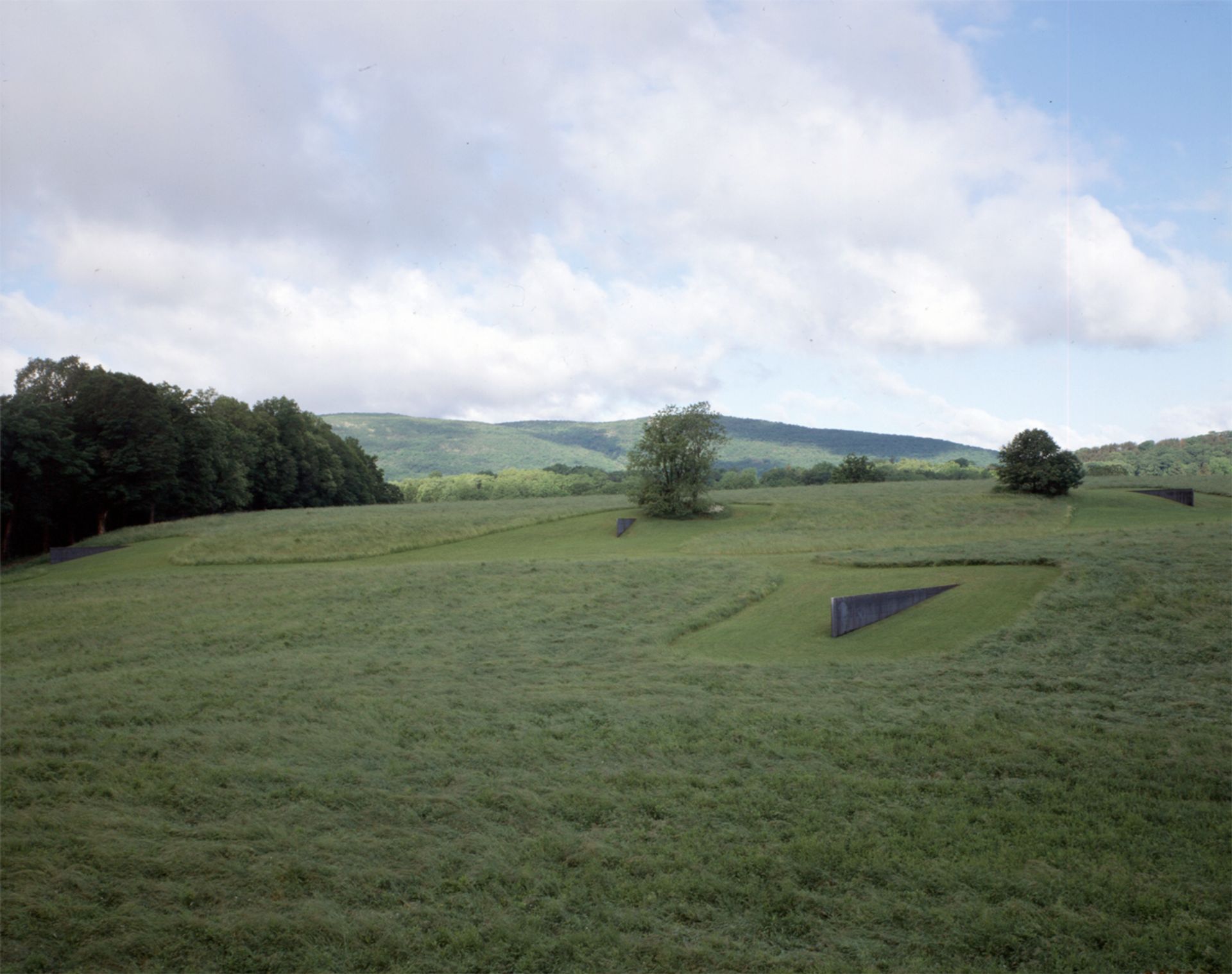“What I tend to do is take cues from the landscape to place the artifice in a way that makes sense in relation to walking and looking. [This field] goes to the core of what Storm King is about: the relationship between sculpture and the Storm King landscape. And I think if one comes here and spends some time with [Schunnemunk Fork] one can understand the relationship of the land in a way that provides a comprehension of natures that other things don't.” Richard Serra speaking with filmmaker Bruce Bassett in 1991. Richard Serra, Schunnemunk Fork (1990-91) (installation view). © 2017 Richard Serra/Artists Rights Society (ARS), New York. Photo: Jerry L. Thompson.