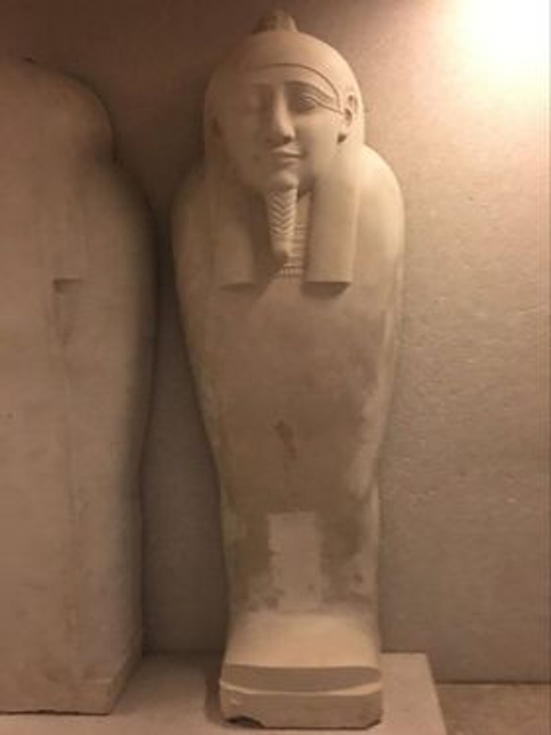Sarcophagus of the prophet Ahmose (332-30BC) with a visible stain © SPK
