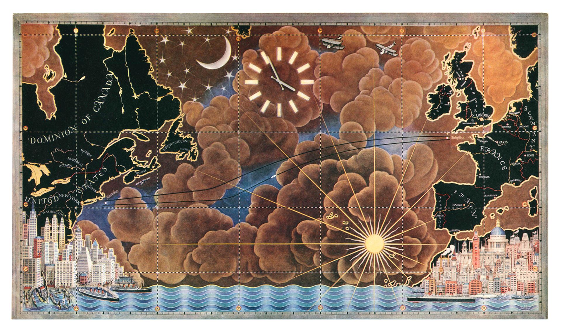Max Gill's map of the North Atlantic, oil on panel, for the Cunard ocean liner Queen Mary, 1936 Caroline Walker