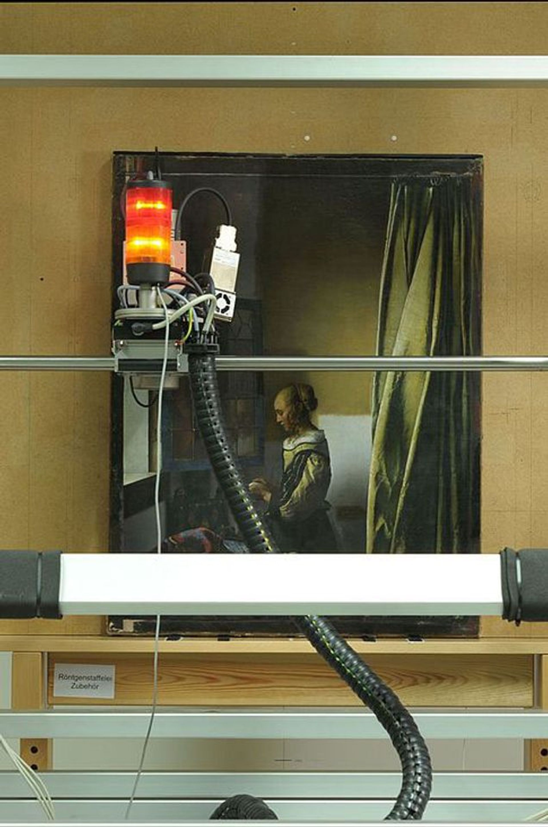 During the restoration of Vermeer's Girl Reading a Letter at an Open Window it was discovered that a depiction of Cupid had not been overpainted by the artist © Staatliche Kunstsammlungen Dresden