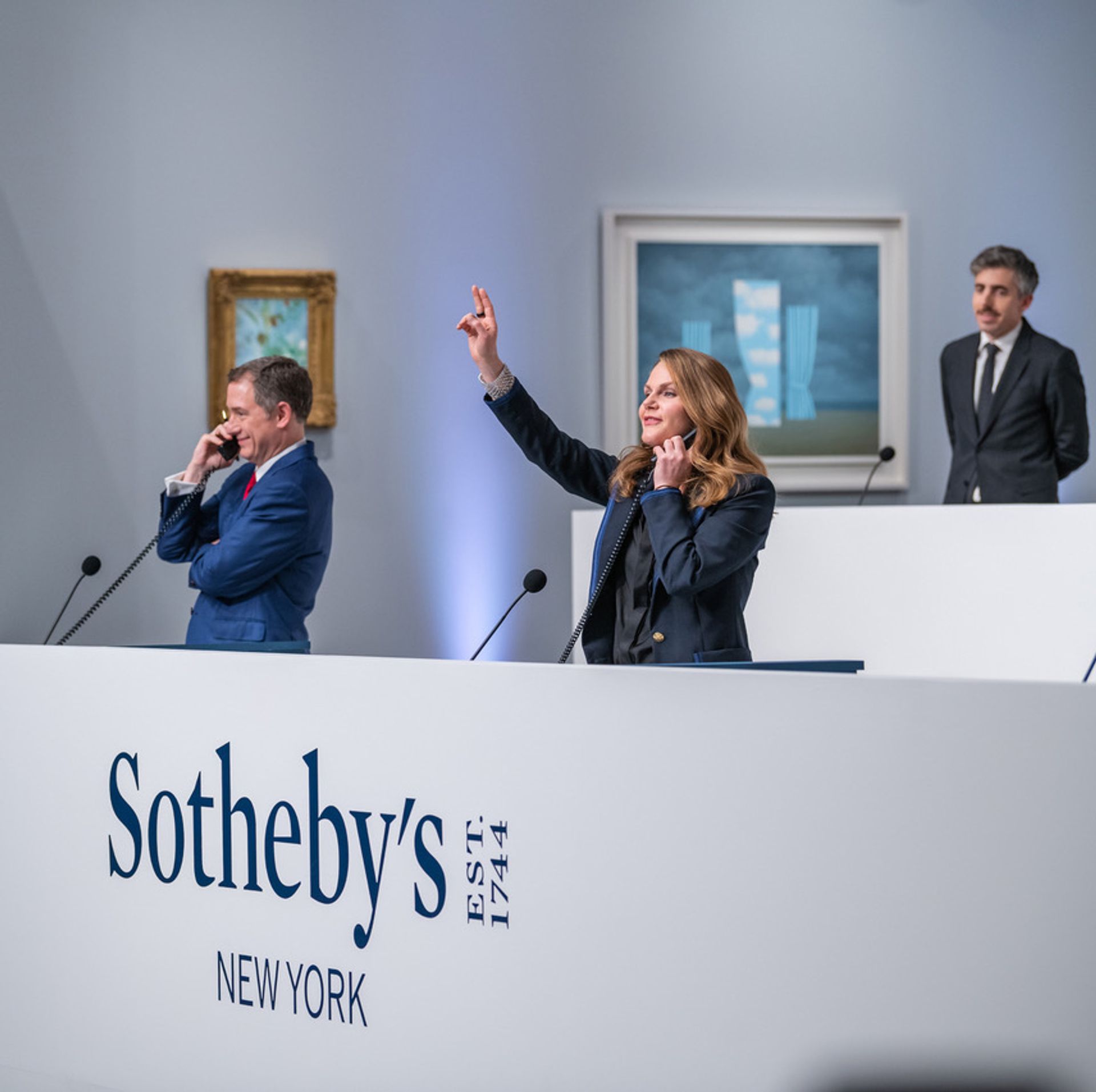 Sotheby’s live-streamed auction, New York, 28 October 2020 (with Van Gogh’s Fleurs dans un Verre on the left) Courtesy of Sotheby’s
