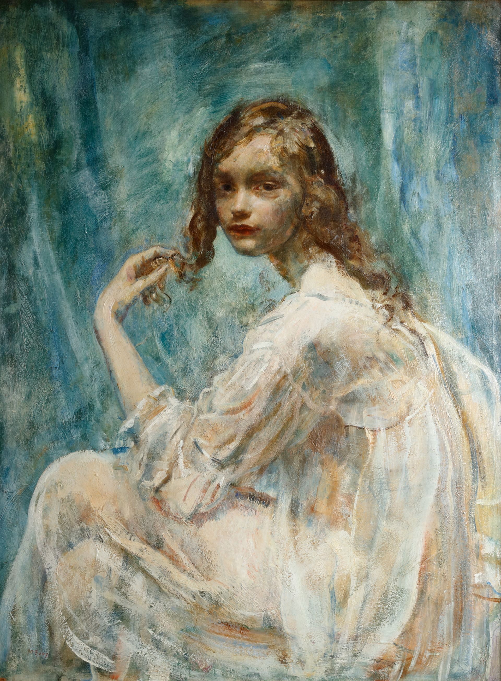 The great value of Eric Chilston’s biography of McEvoy is in its use of primary sources and the author’s deep personal knowledge of his subject. It was researched in the 1970s, with the help of McEvoy’s daughter, Anna, when many of McEvoy’s sitters were still alive and includes eye-witness accounts of how the artist created his non finito effects. “Sometimes when one thought the picture was nearly finished,” his friend and regular sitter the artist Daphne Pollen—elder daughter of Maude Baring—remembered, “he would scumble a transparent coat of white all over it at the beginning of a sitting and paint into this glaze. He usually painted all over the canvas at one sitting and seemed to make a new picture each time. His deftness and speed and precision were prodigious.”