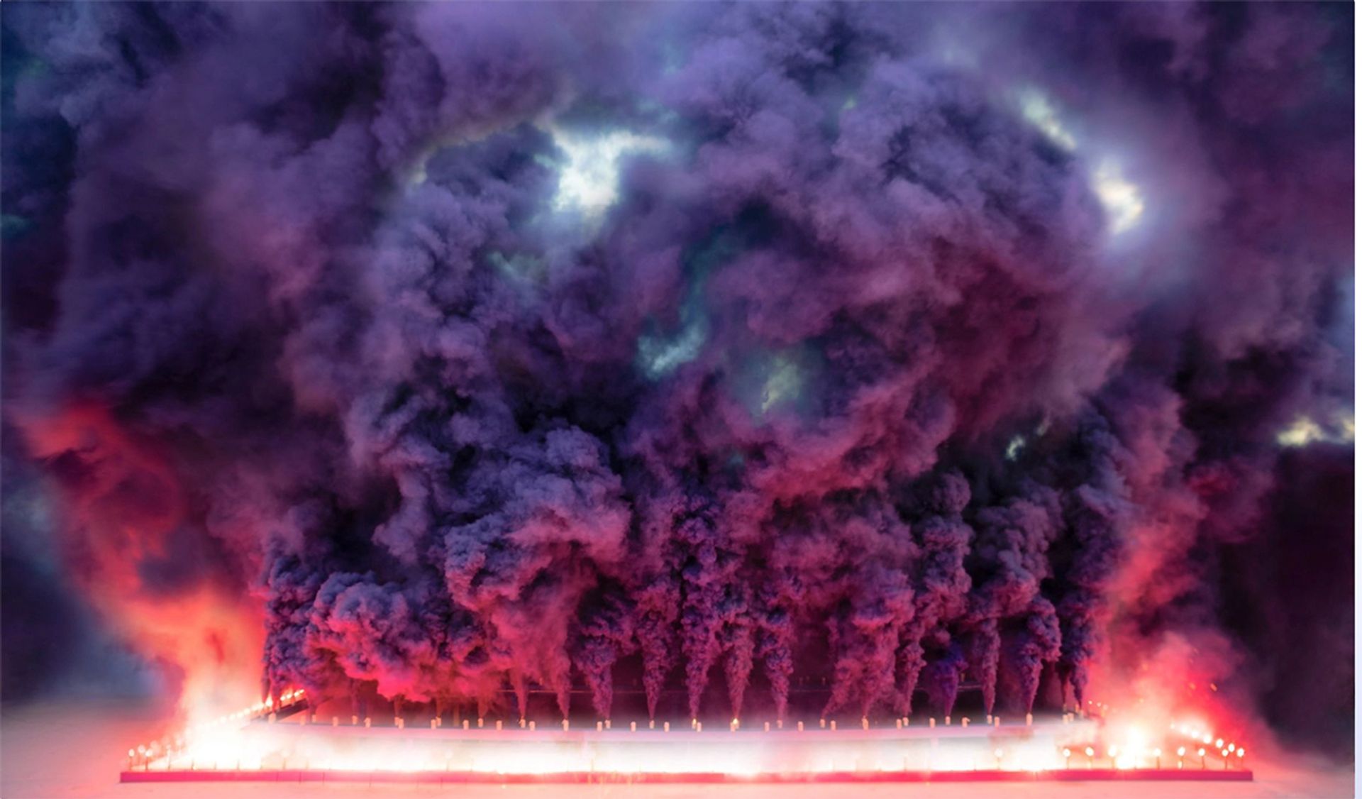 Judy Chicago began experimenting with pyrotechnics in the late 1960s with her Atmosphere series—a range of sculptures that billowed coloured smoke around the broad expanses of California. Now taking her work virtual, Chicago has launched an app which allows viewers to engage with these works in their immediate environment via AR. The experience is accompanied by a polyphonic soundtrack, which uses soundscapes made from recordings from her work with the pyrotechnician Chris Souza. Chicago says that her Atmosphere series was borne from "a long-standing effort to soften and feminise the often-harsh, patriarchal world around us". Gifted to a wintry world in lockdown, these mesmerising plumes of colour provide a welcome jolt of beauty to our surroundings at a time when life seems most bleak.
