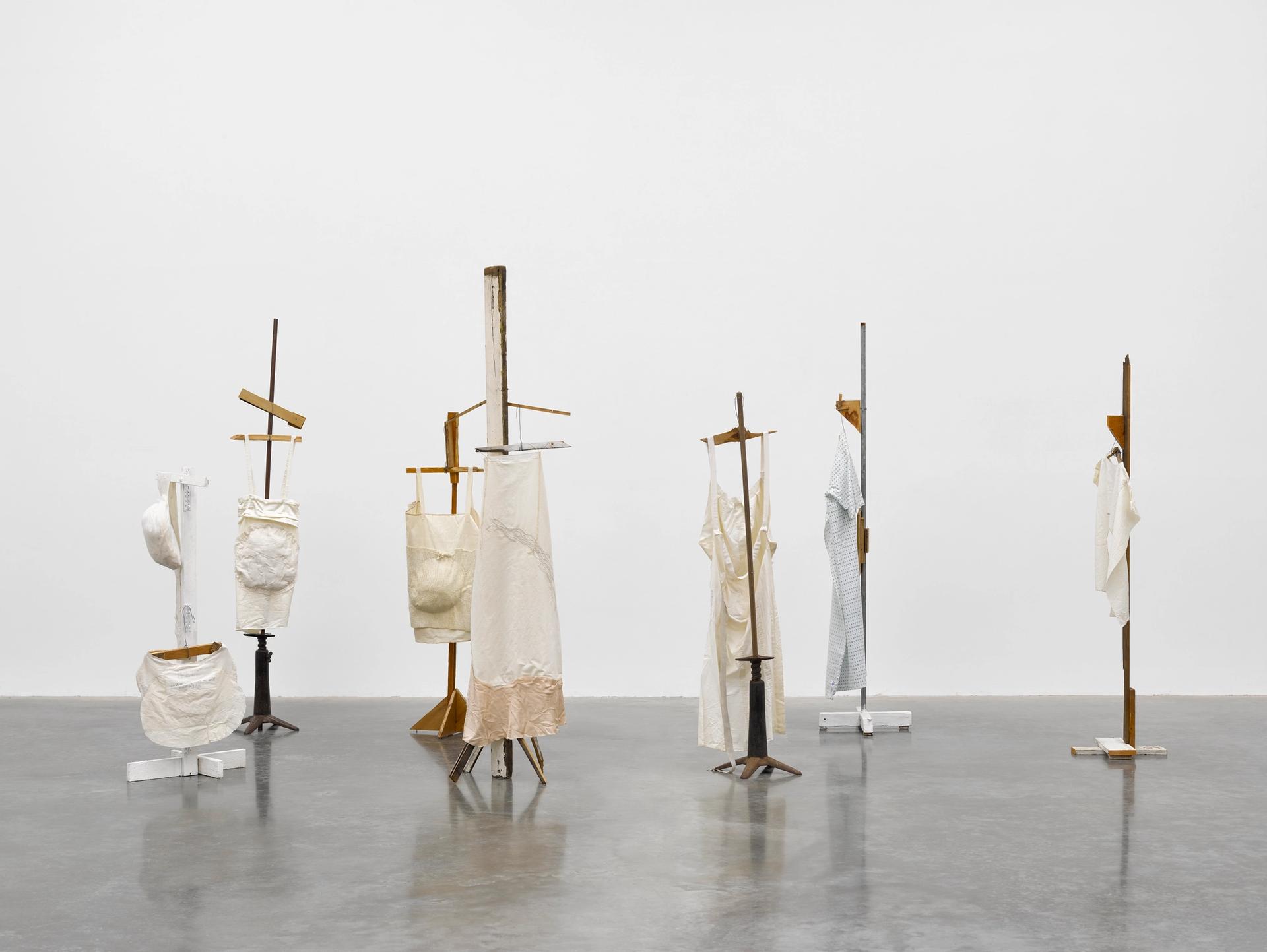 Such is the art world's new hybrid reality, the London gallery is also participating in this year’s online edition of Art Basel in Miami Beach, where it is presenting Emin’s 2005 installation, Feeling Pregnant III, priced at $550,000. Emin created the work—consisting of a group of wooden figures loosely dressed in hand-sewn slips and smocks with sagging bulges or bumps—aged 42, when she realised she wasn’t going to have children. “I decided to make my own pregnancy instead,” Emin tells The Art Newspaper.