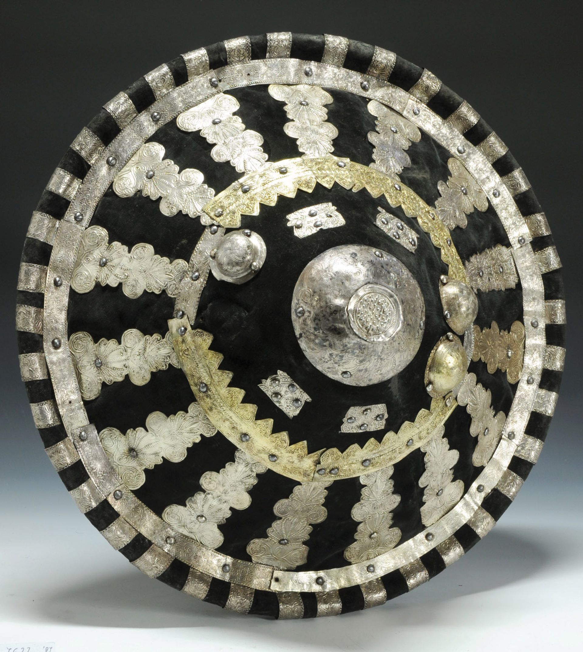 A 20th-century black velvet and silver gilt shield from Ethiopia © Museo delle Civiltà - Museo Italo Africano "Ilaria Alpi"