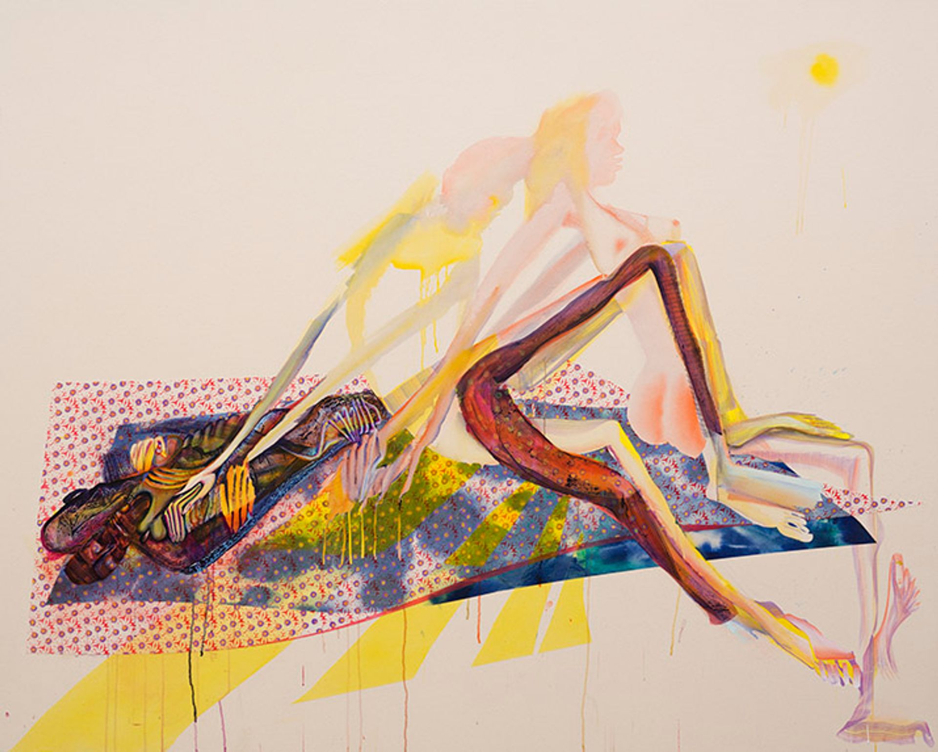"I think one of the benefits I have is a traditional education in drawing and then a much newer introduction to painting. A lot of the fundamentals of how to render a figure have been drilled into my mind from the age of 12 when I took my first figure drawing class. But I entered grad school at 29-years-old, not really knowing how to stretch a canvas or anything about colour theory. So a lot of the elements of paint I think about in a more playful, experimental way because I'm not as tied down to a tradition of how to use paint or canvas. But I am tied to a very rigid tradition of how to render the body. And so I think that allows for this experimentation in the works that can allow for there to be a vocabulary that you can become familiar with, the more you become familiar with my work."