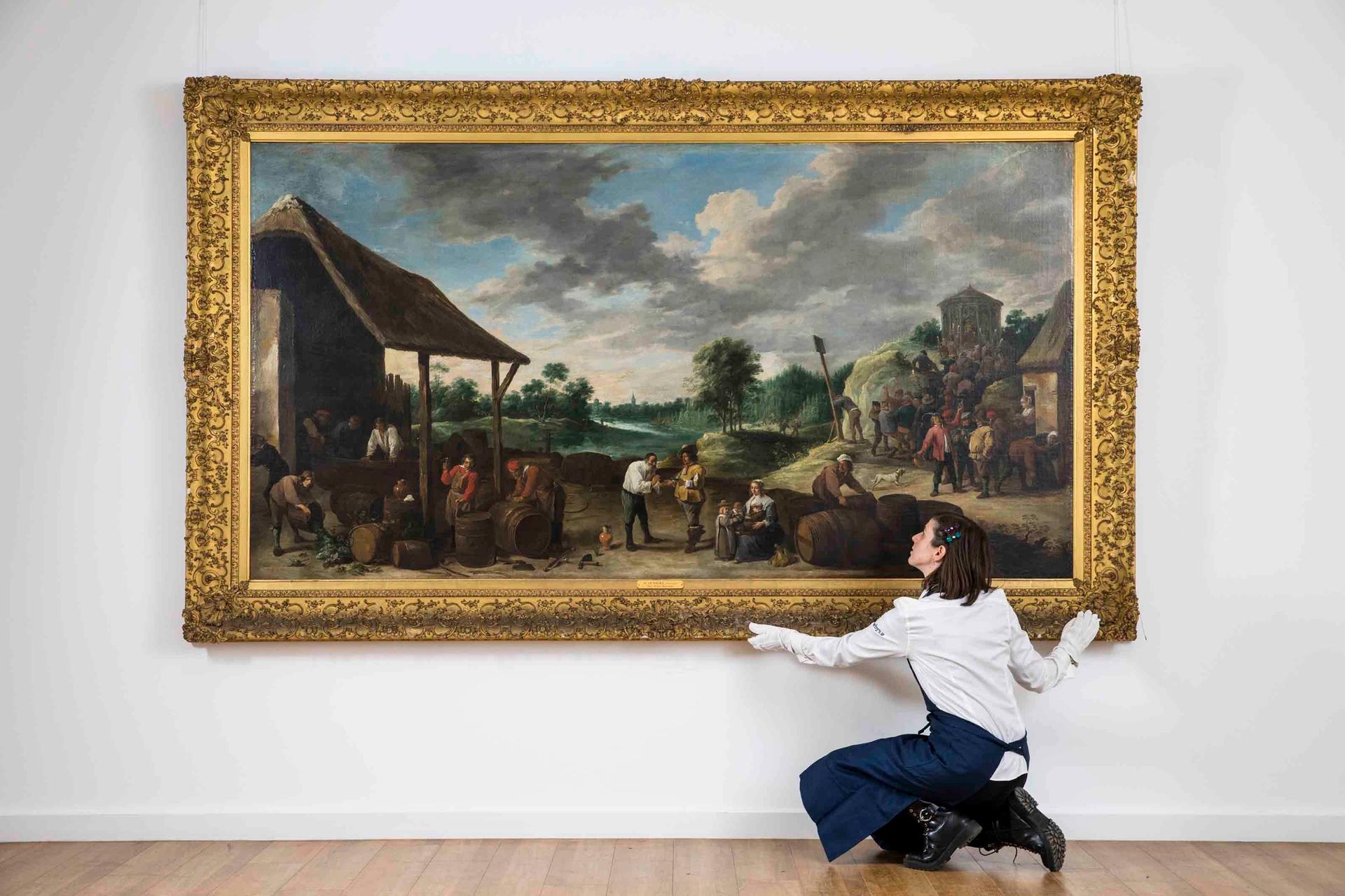 Tonight, Sotheby’s Old Master evening sale includes David Teniers the Younger’s 17th-century enormous painting, The Wine Harvest, which has been hanging over the mantelpiece in the Long Gallery at Firle Place in Sussex for many years. It was bought, probably in the 1770s, by Peniston Lamb, 1st Viscount Melbourne, who hung it at Brocket Hall, and was last shown in public in 1881 at the Royal Academy of Arts. It is now estimated to sell for £3m to £5m.