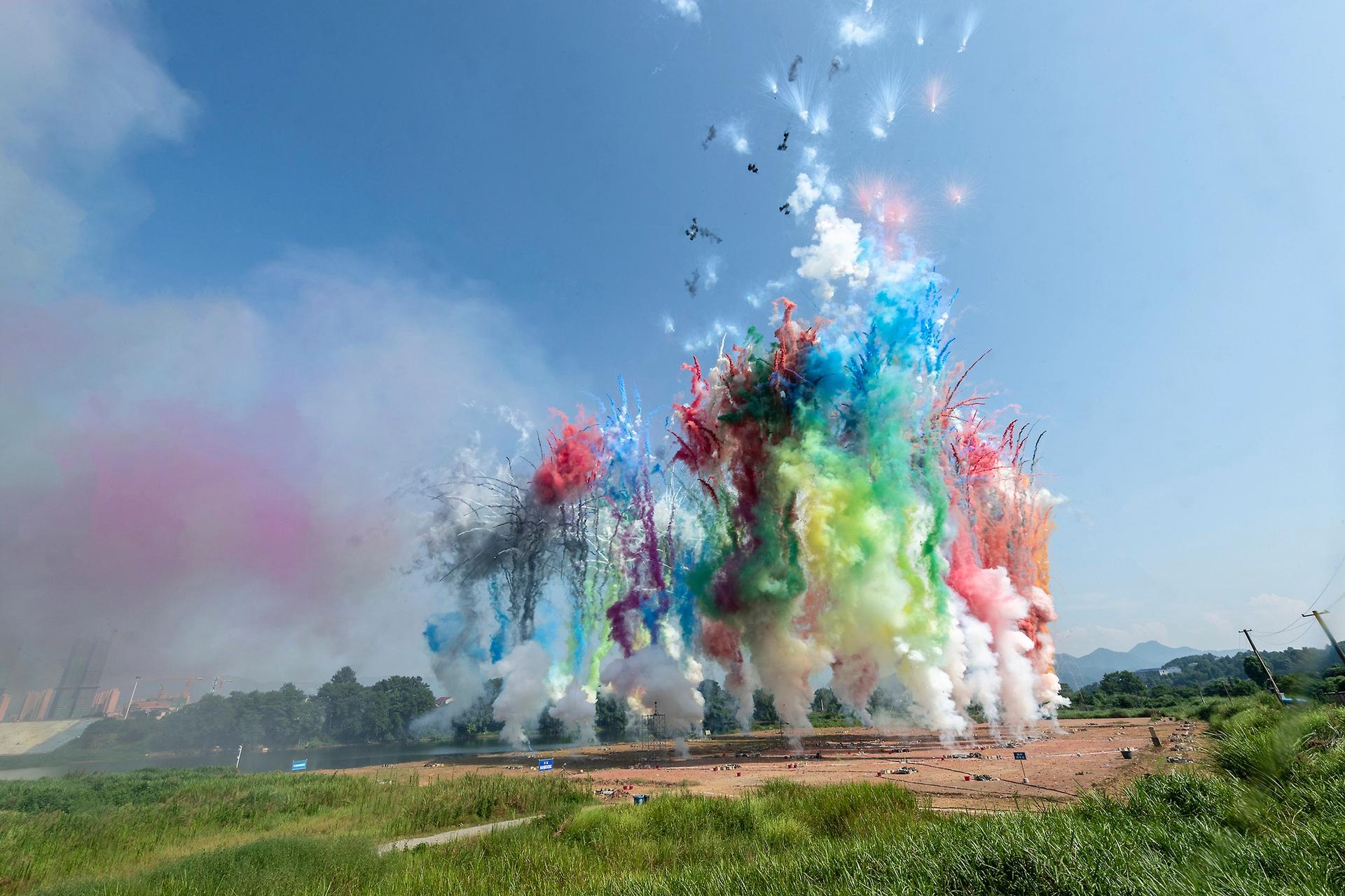The actual fireworks for Sleepwalking in the Forbidden City were set off by the Liuyang River, China, before being digitally transposed for the VR work Photo: Lin Yi, courtesy of Cai Studio