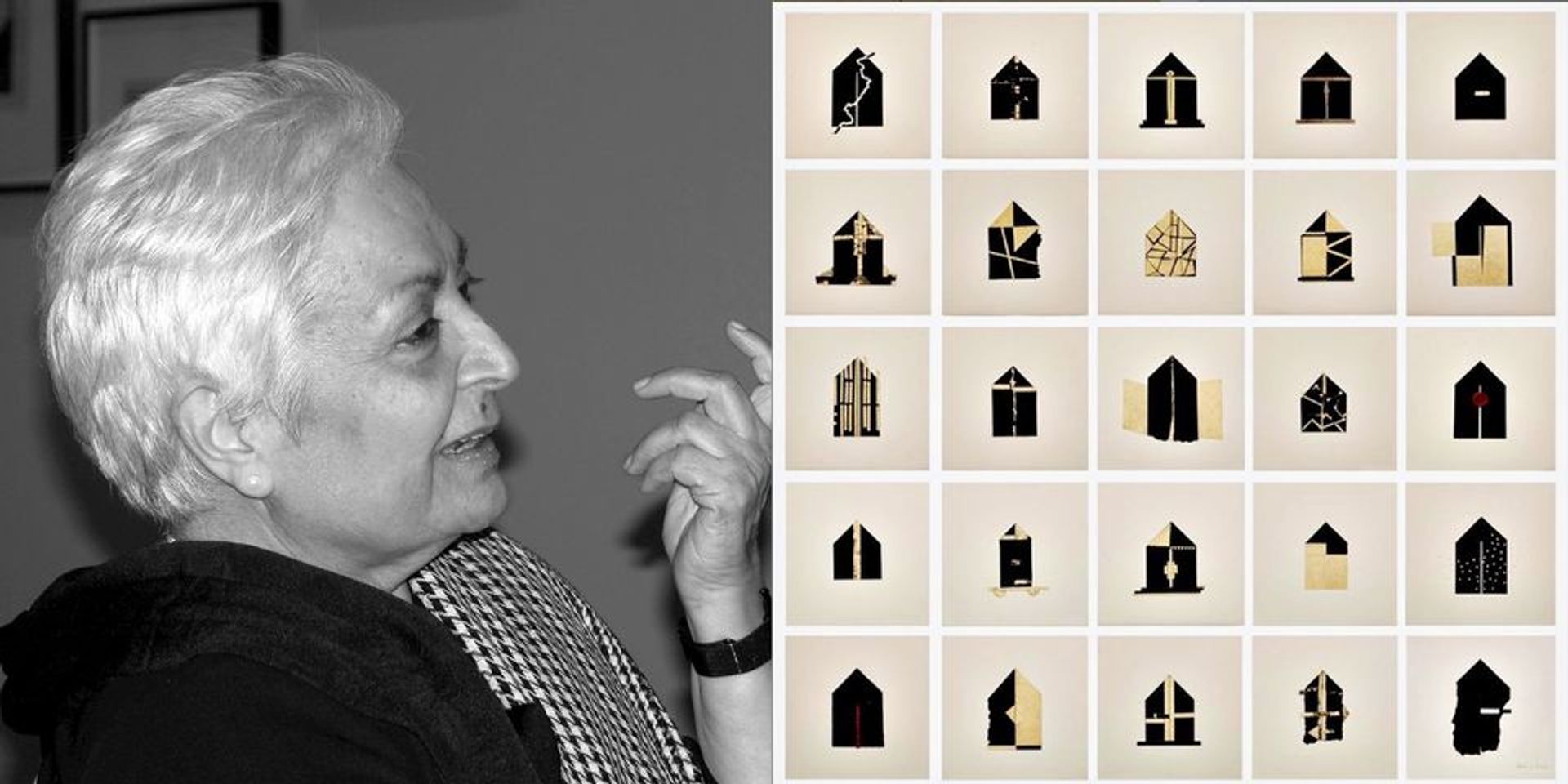 Left: Zarina Hasmi; right: her work Folding House (2013)