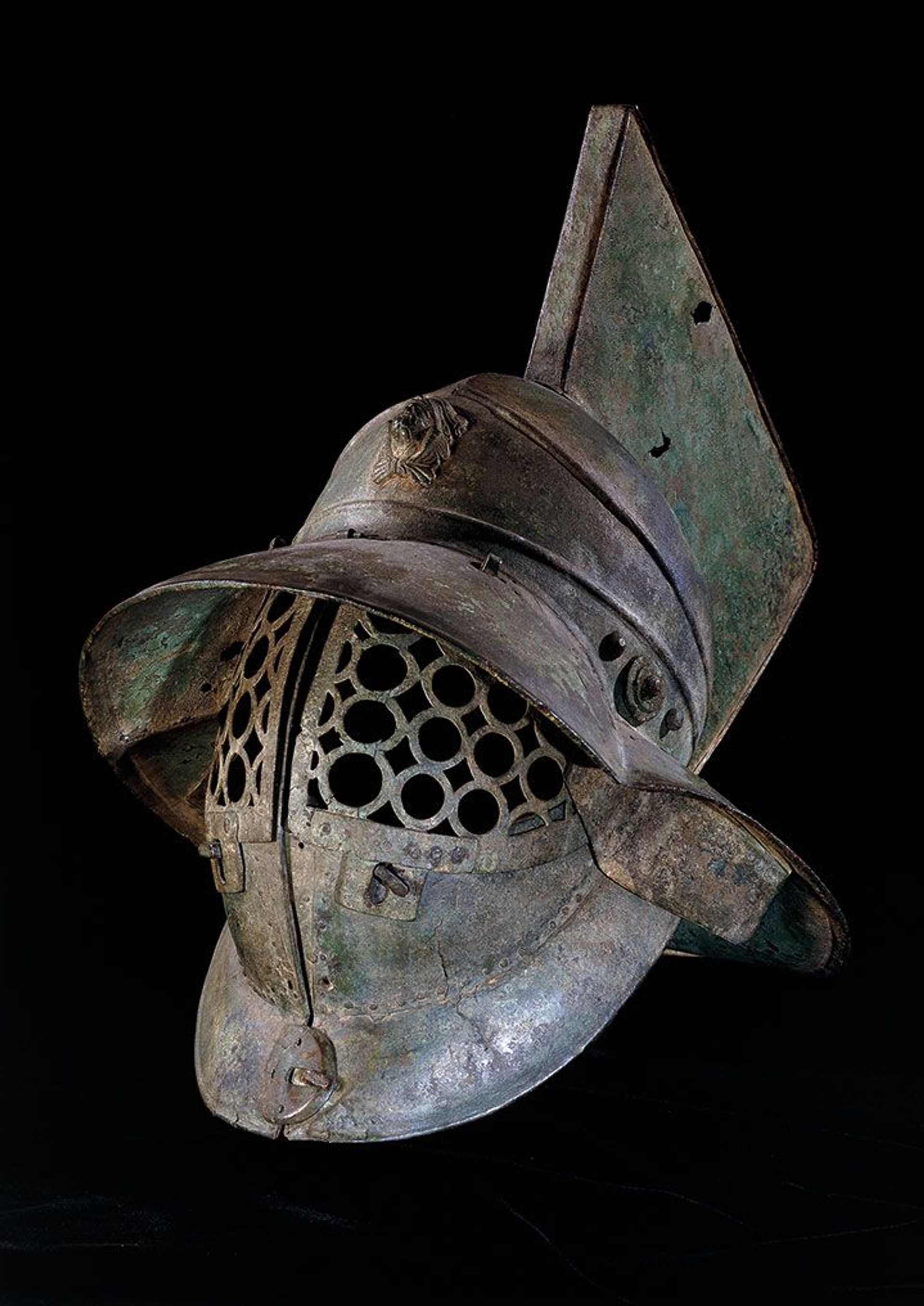 A 1st-century AD bronze gladiator’s helmet from Pompeii © The Trustees of the British Museum