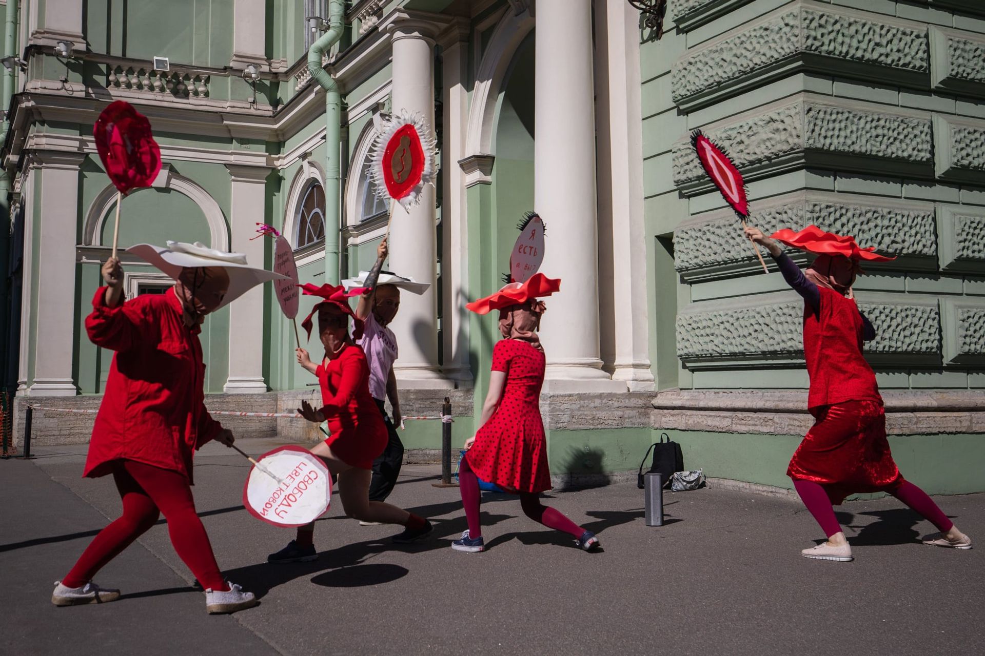 Last August, Apakhonchich organised a performance called Vulva Ballet outside the Mariinsky Theater in defense of Yulia Tsvetkova, an LGBTQ artist activist from Russia’s Far East who faces up to six years for her body positive feminist drawings.