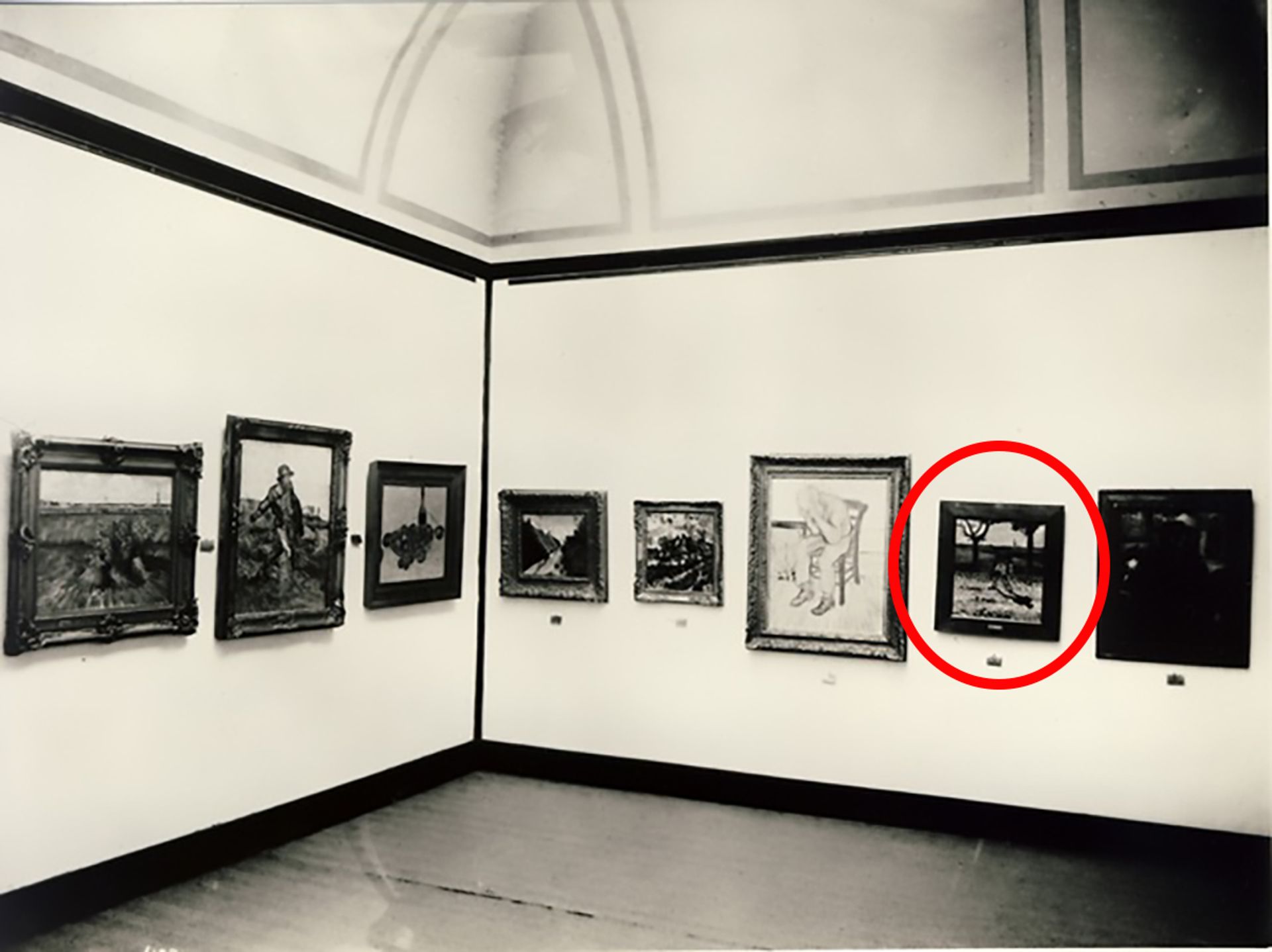 This early black-and-white photograph has now been studied by the UK-based frame historian Lynn Roberts, who writes a blog on frames. She is convinced that the Van Gogh frame would have been gilded: “On the top there are what appear to be minute scratches on the gold, whereas you would be able to see the grain of the wood if it were ungilded. The brightness of the beading shows that it is gilded, as does the relatively high contrast over the frame as a whole.”