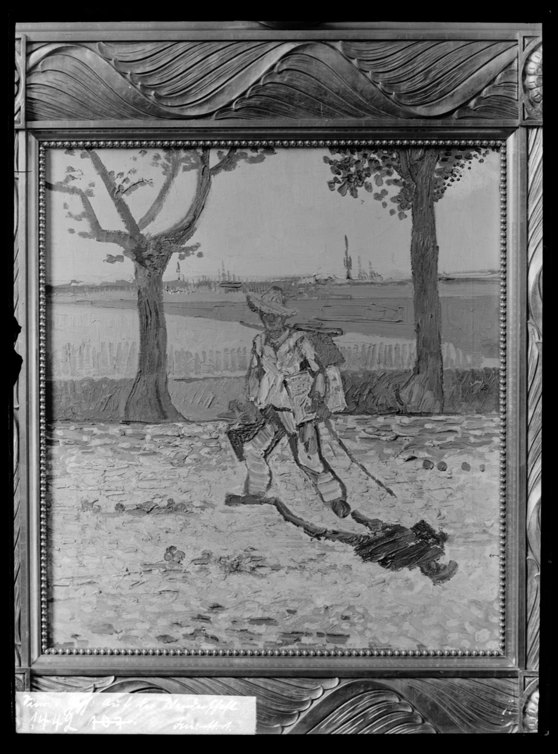Vincent van Gogh’s The Artist on the Road to Tarascon (1888) in its original museum frame, glass negative of the 1920s Courtesy of the Kulturhistorisches Museum Magdeburg