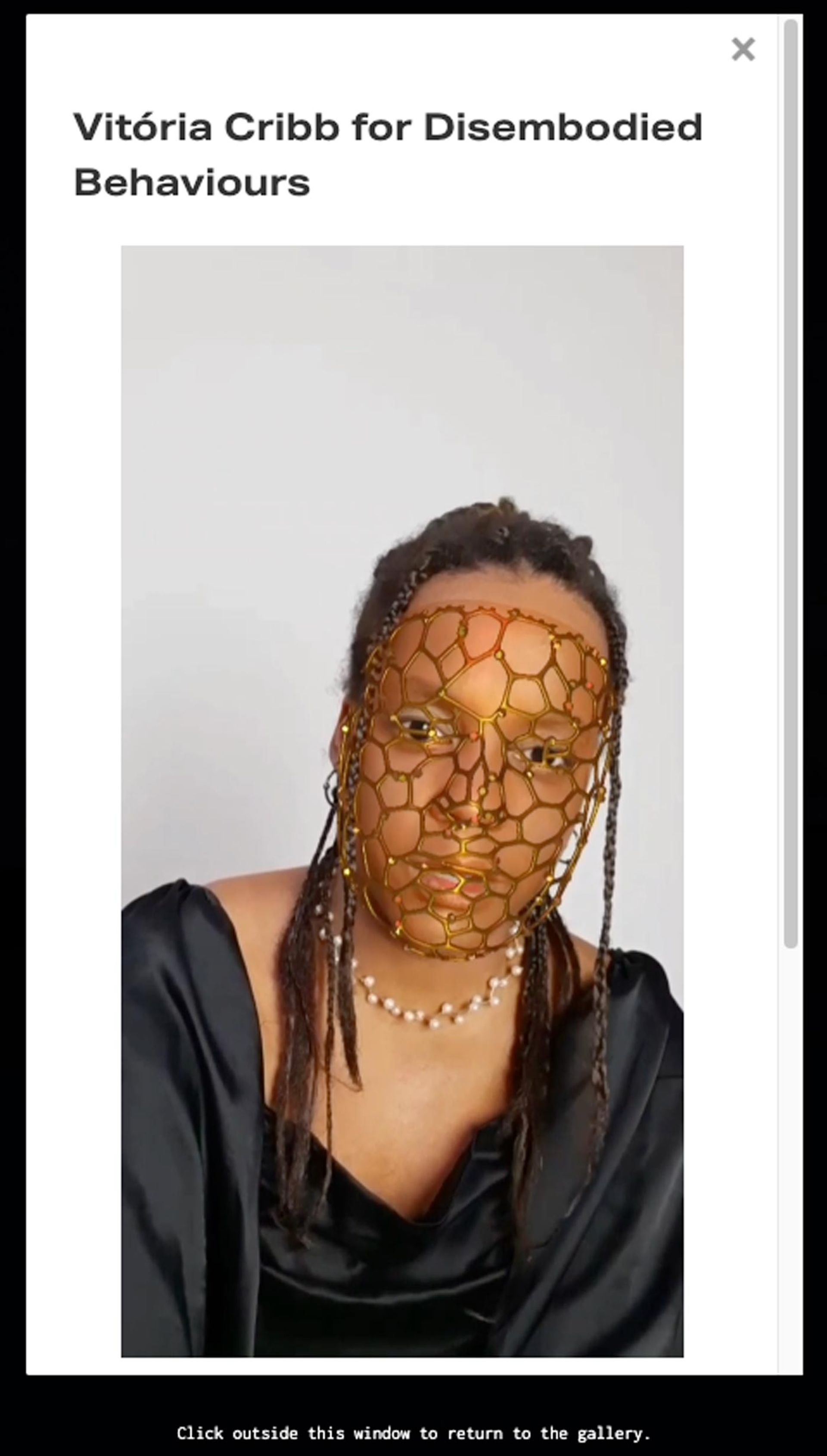 Click into a portal and a video of Brazilian Black artist Vitória Cribb with a 3D metal mesh on her face describes how we too often view Black bodies as “digital bodies—exploited and reduced like files or software”. Click into another portal and LaJuné McMillian explores the ethical issues that come with digitising and the capitalisation of Black culture and bodies. Kumbirai Makumbe created an AI, embodied as a shapeless, reflective silver form which personifies and celebrates Blackness, while Julie Béna highlights the inherent dangers of excessive focus on transparency.