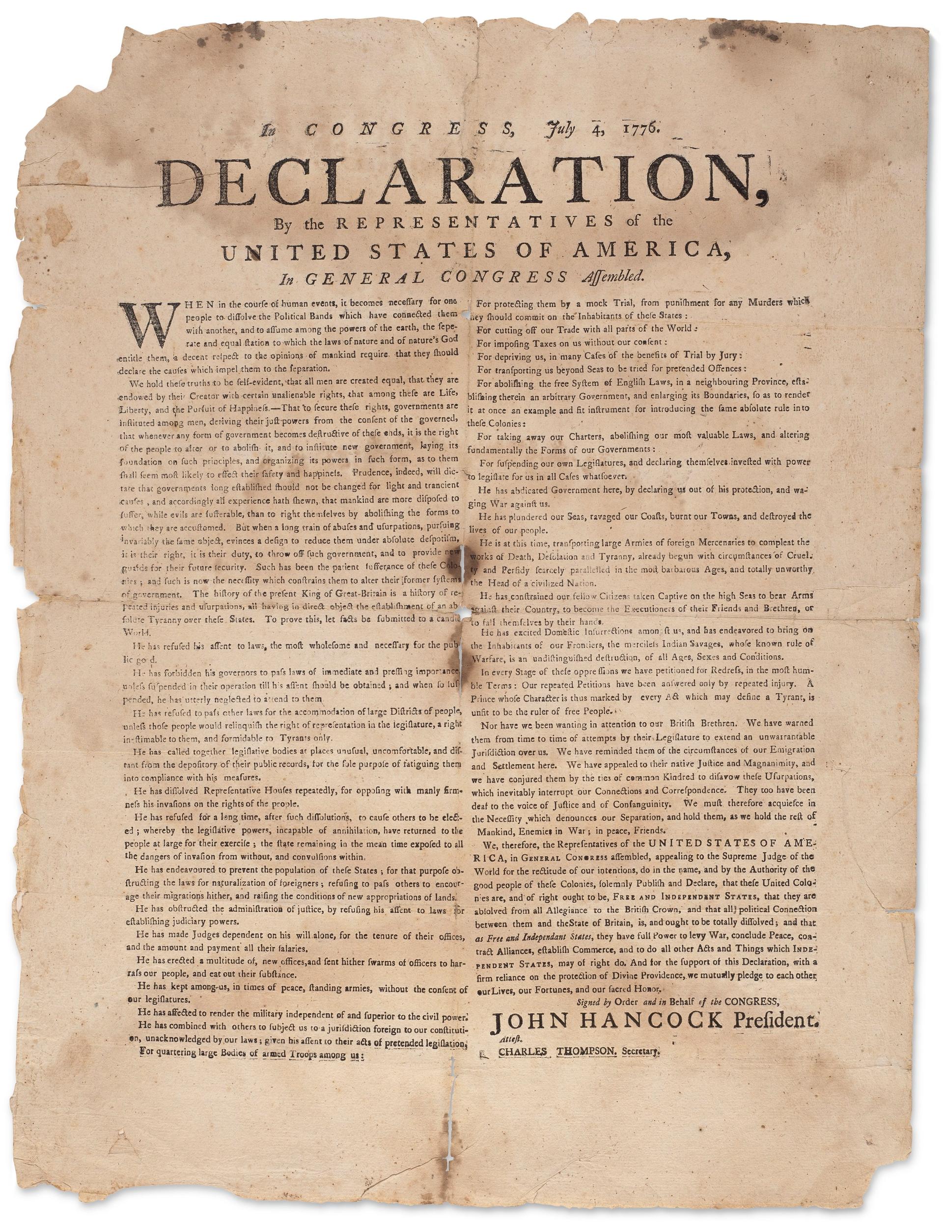Catching up on first hand American history just got more expensive. At Christie’s, a 1776 broadside edition of the Declaration of Independence went for $990,000 (est. $600,000-$800,000). Philadelphia printer John Dunlap worked into the wee hours on 4 July to produce the broadside for rapid fire distribution the very next day. Paul Revere took a little longer—three weeks—from the Boston Massacre on 5 March 1770 to the publication of his explicit engraving of the scene on 26 March. An impression went for $412,000 (est. $200,000-$300,000), also at Christie’s—a record for this print.