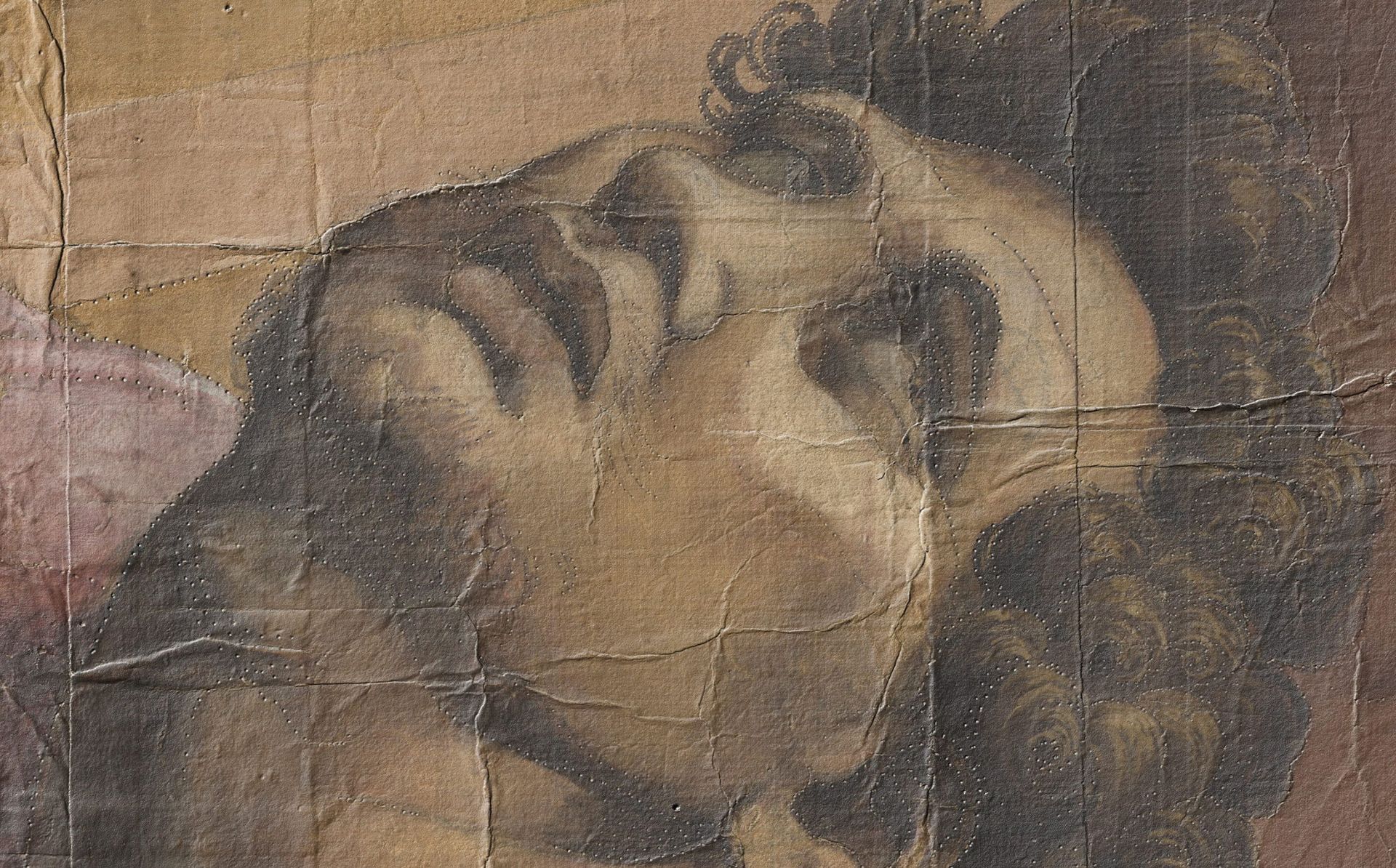 A detail of The Death of Ananias reveals the minute pinholes used to transfer Raphael's composition to a template for the tapestry weavers in Brussels Photo: © Victoria and Albert Museum, London. Courtesy Royal Collection Trust / Her Majesty Queen Elizabeth II 2020