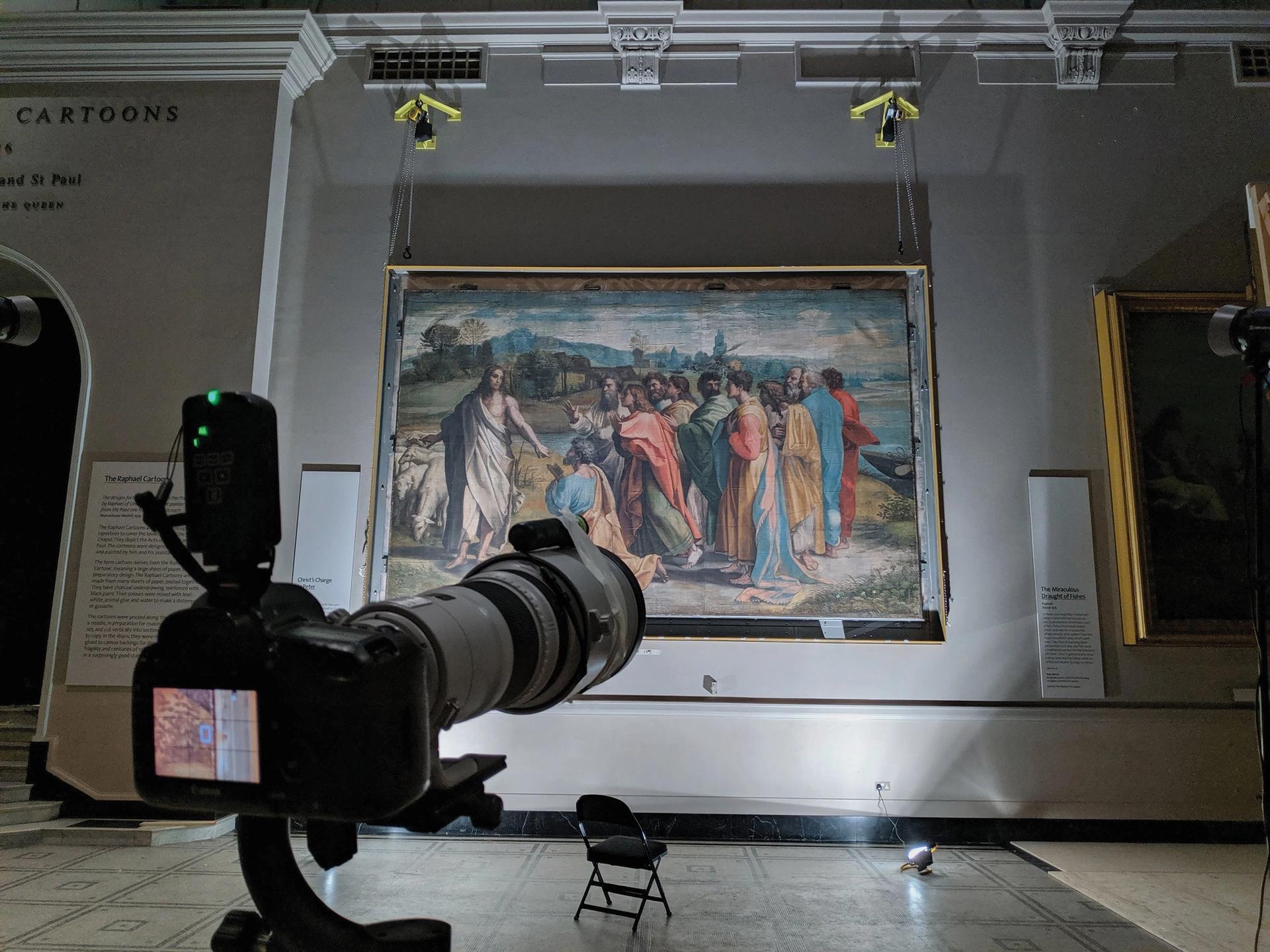Factum Foundation spent five weeks in summer 2019 recording the Raphael Cartoons, including Christ's Charge to Peter, with panoramic composite photography, infrared and 3D scanning © Gabriel Scarpa for Factum Foundation
