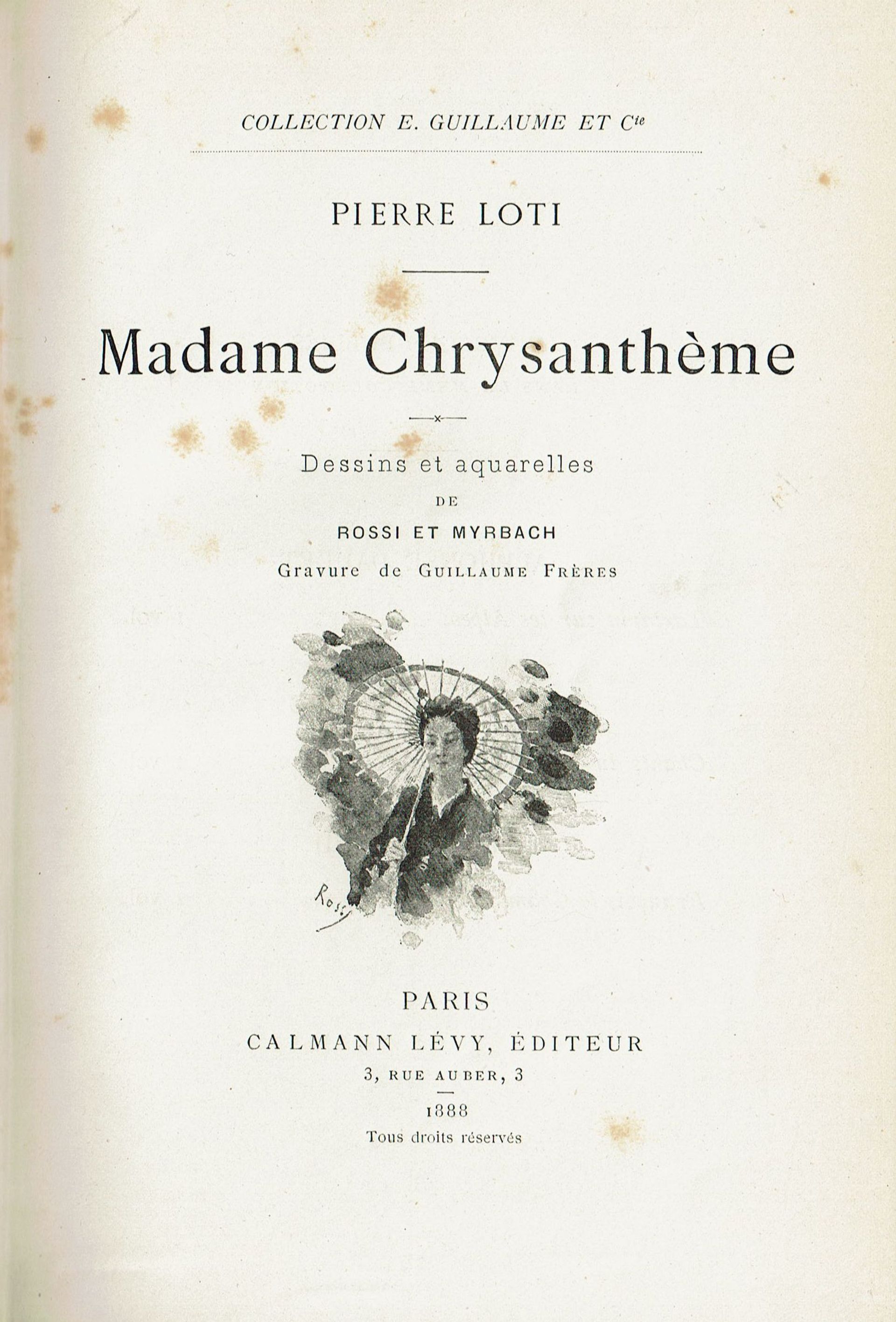 Title page of Pierre Loti’s Madame Chrysanthème, Lévy, Paris, 1888 (illustration by Luigi Rossi)