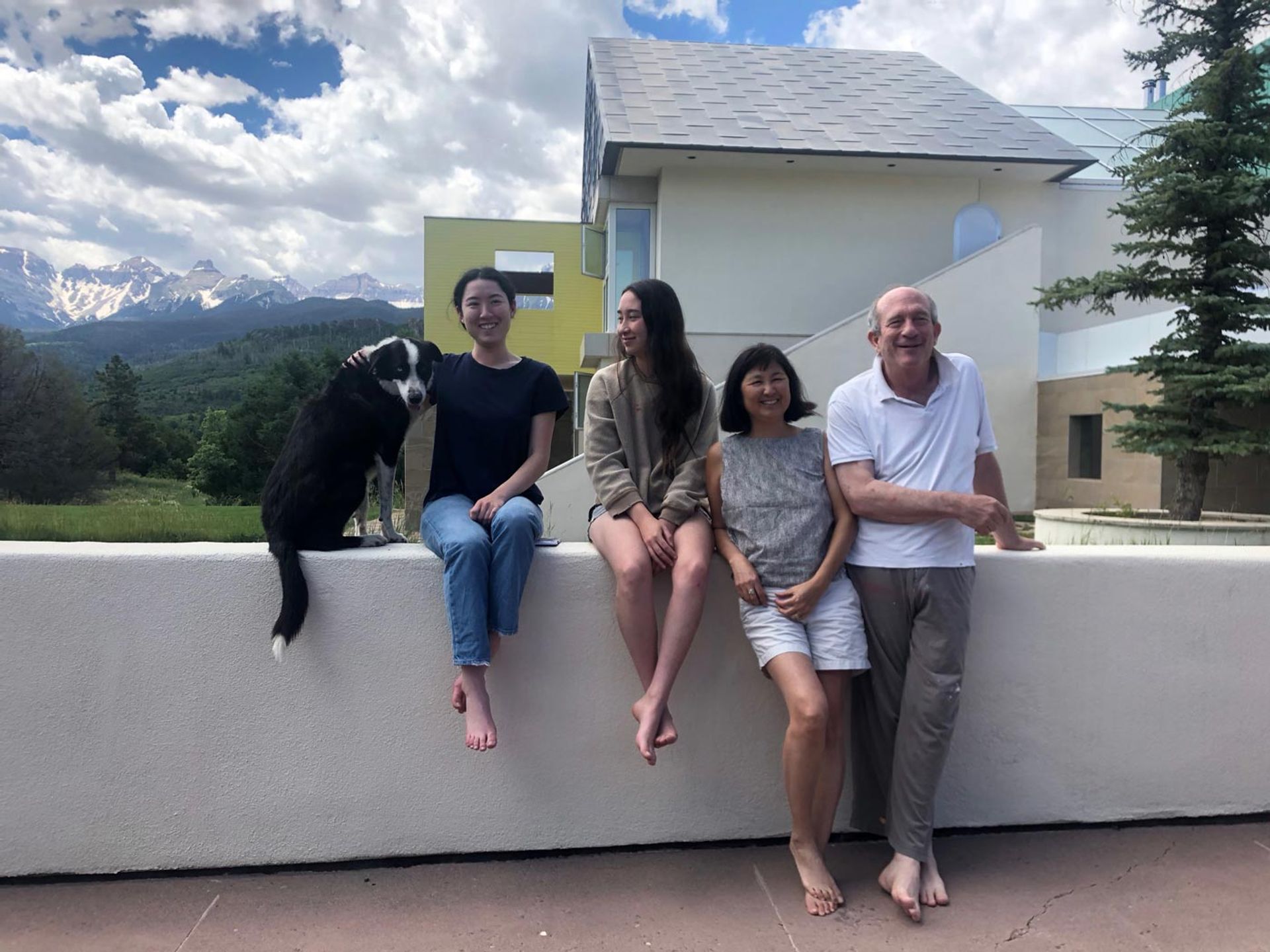 Wolf and his wife the sculptor, land artist and architect Maya Lin at home in Colorado in 2019 with their daughters India (far left) and Rachel (second left) Courtesy of Ana Dubson