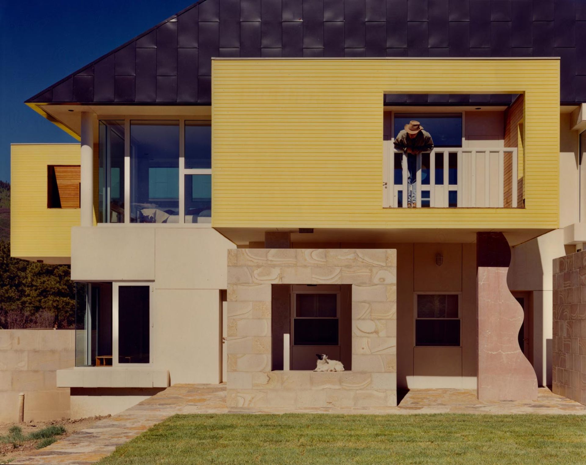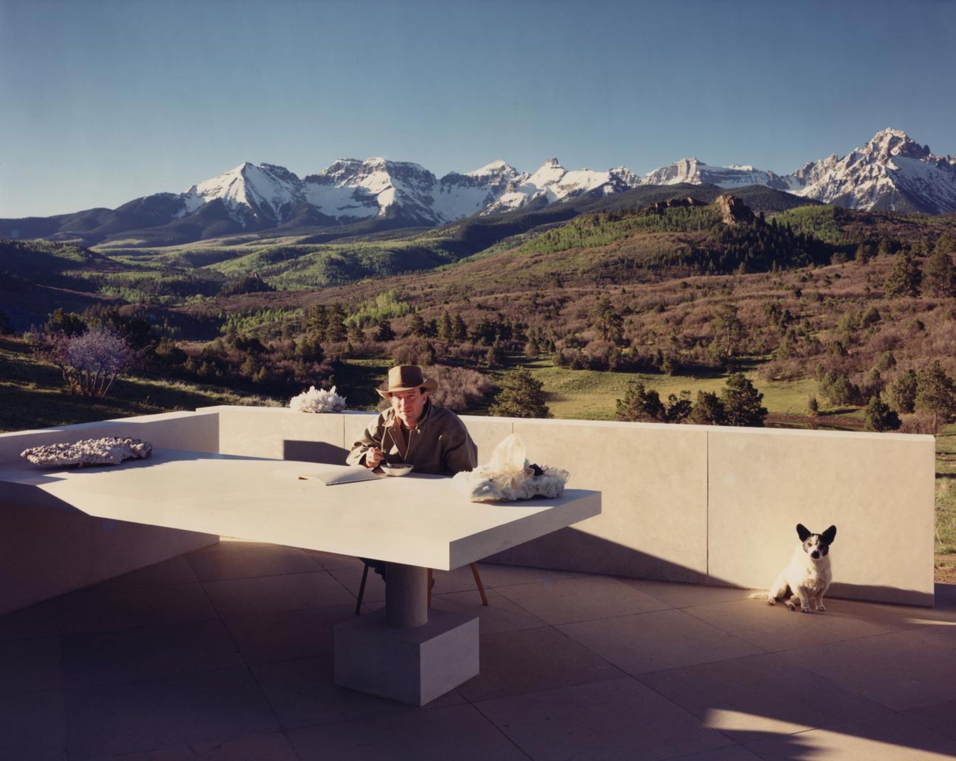 A lover of the Wild West: Wolf on the terrace of his Ettore Sottsass house at Ridgway, Colorado, 1990 © Joel Sternfeld
