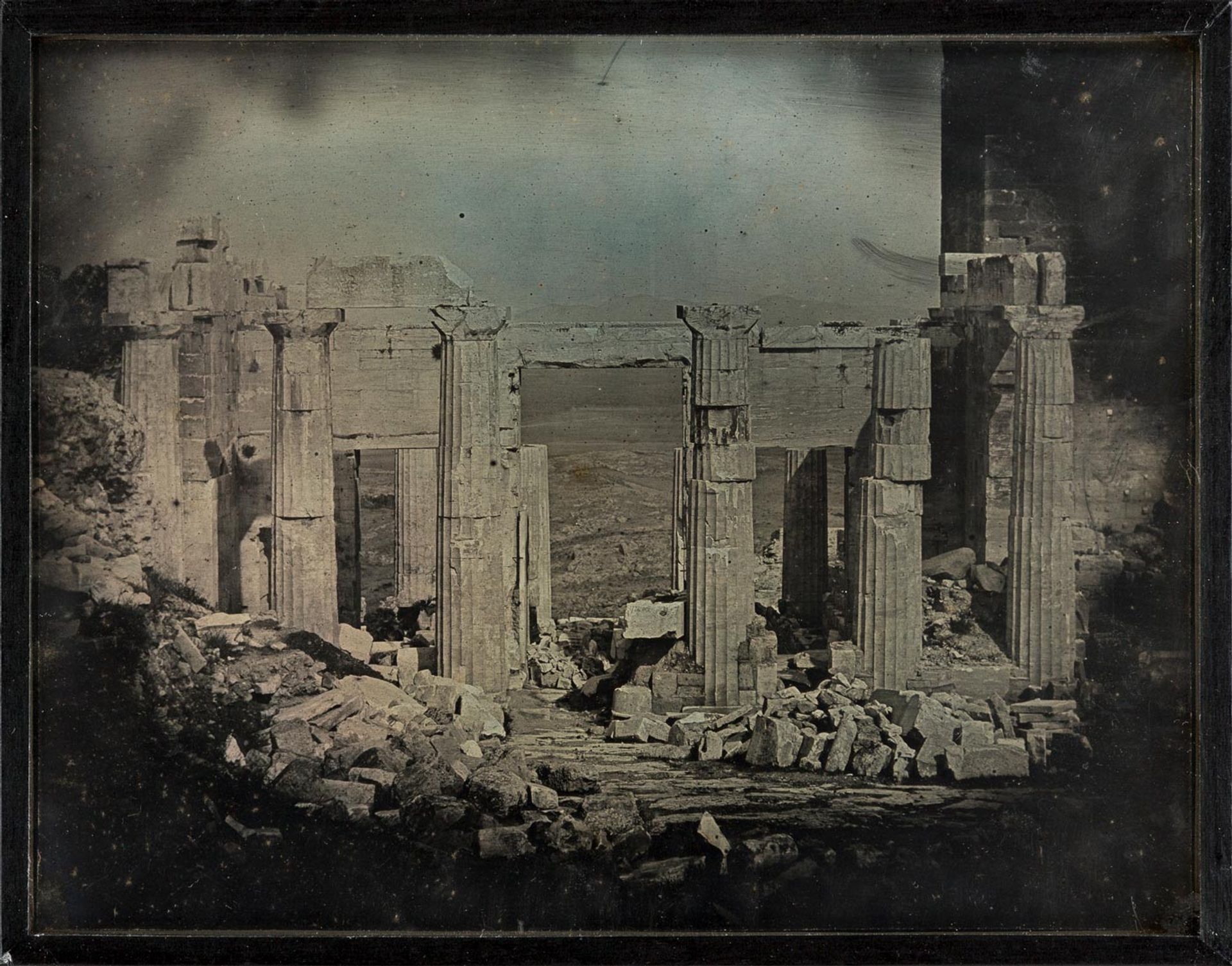 Joseph-Philibert Girault de Prangey, "91. Athènes. 1842. Propylées. Pris de l'Intérieur", daguerreotype, 1842. Wolf's discovery of unknown daguerreotypes by Prangey enabled the Metropolitan Museum of Art, New York, and the Musée D'Orsay, Paris, to mount one-man shows of the pioneer photographer's work Courtesy of Daniel Wolf Collection