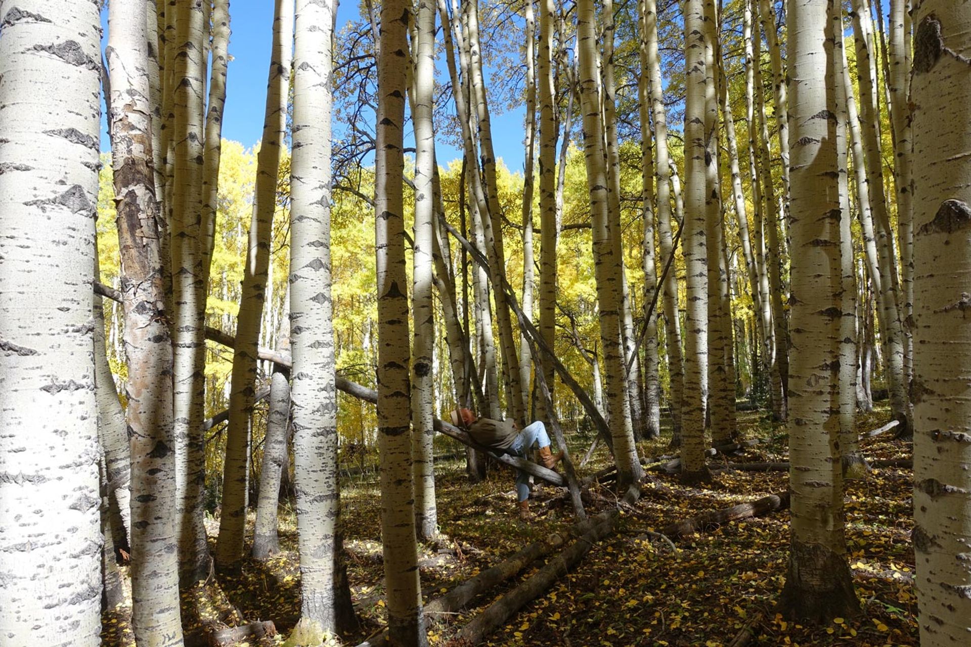 Wolf photographed in the aspen woods near his home in Colorado by his daughter India, 2020 Courtesy of India Wolf