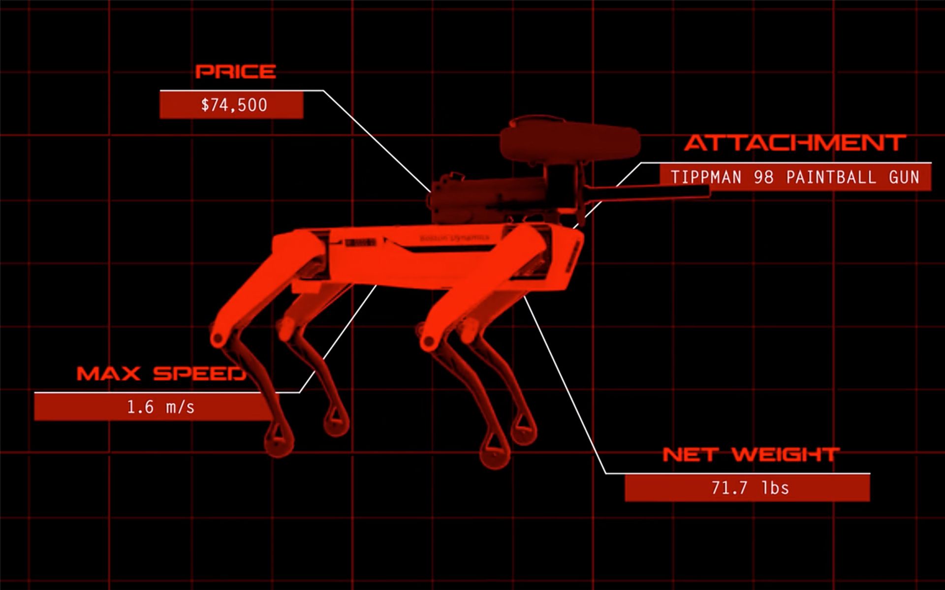 Spot's manufacturer, the engineering company Boston Dynamics, tweeted in displeasure at the "provocative" project when it was announced earlier this week. "We condemn the portrayal of our technology in any way that promotes violence, harm or intimidation," reads a statement.
