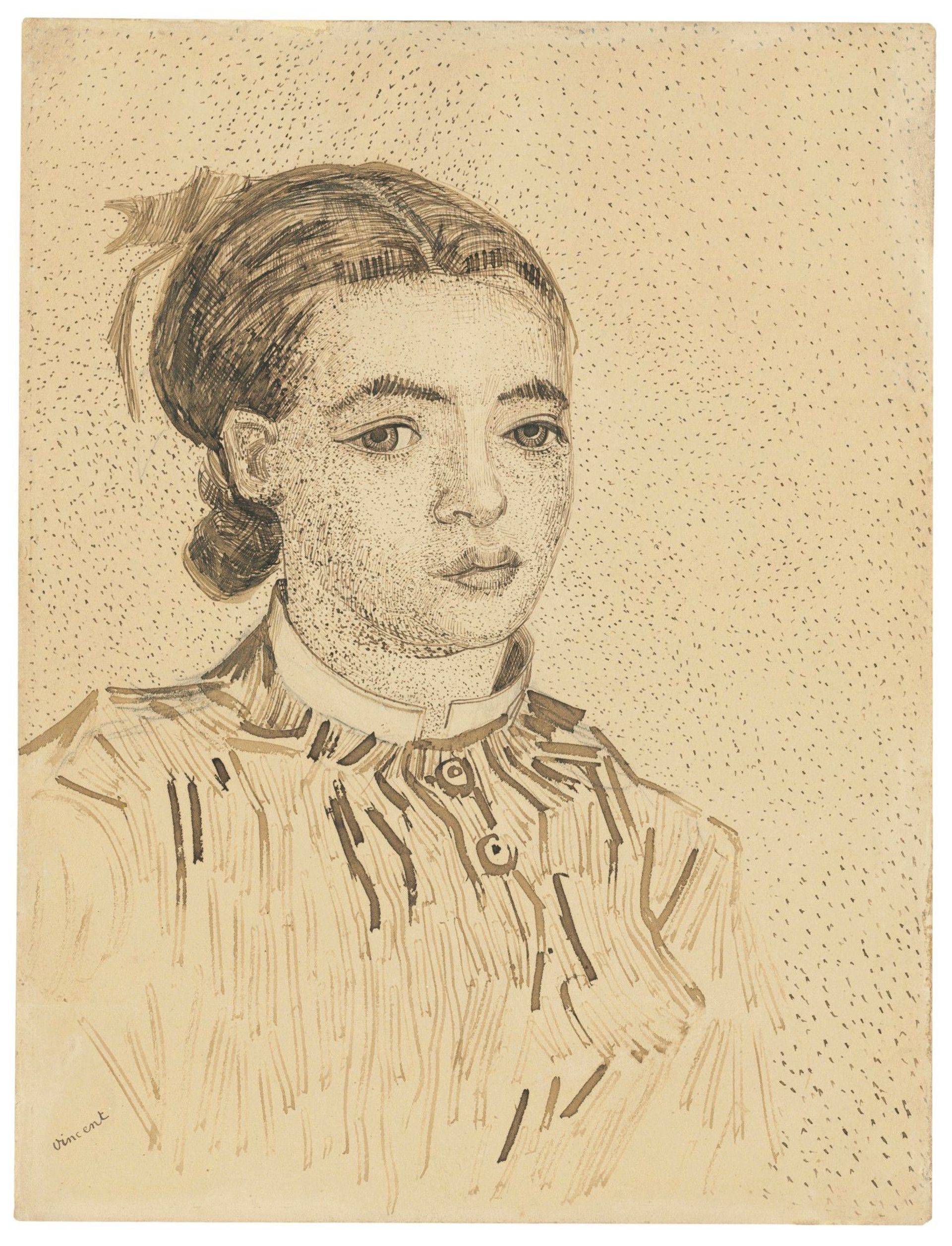 Vincent van Gogh’s drawing of La Mousmé (July-August 1888), sold for a record $10.4m Courtesy of Christie’s