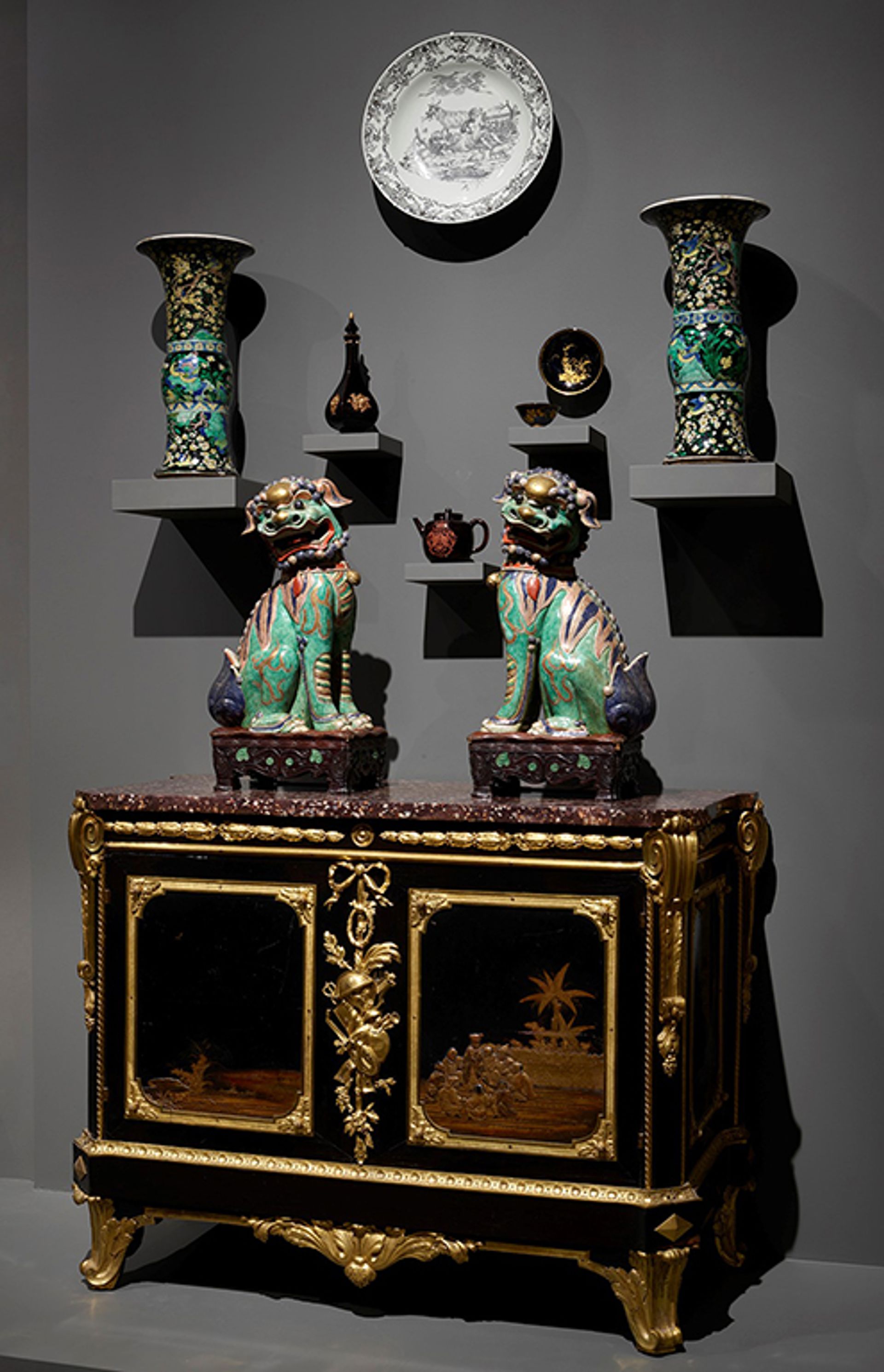 A porcelain display in a third-floor gallery at the Frick Madison The Frick Collection; photo: Joe Coscia
