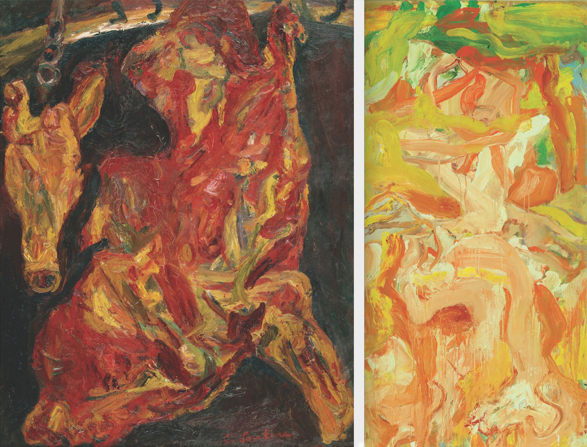 Soutine's Side of Beef with a Calf’s Head (around 1925) and De Kooning's Woman in a Garden (1971) © 2021 ARS, © RMN-Grand Palais / Art Resource; © 2021 Willem de Kooning Foundation/ARS