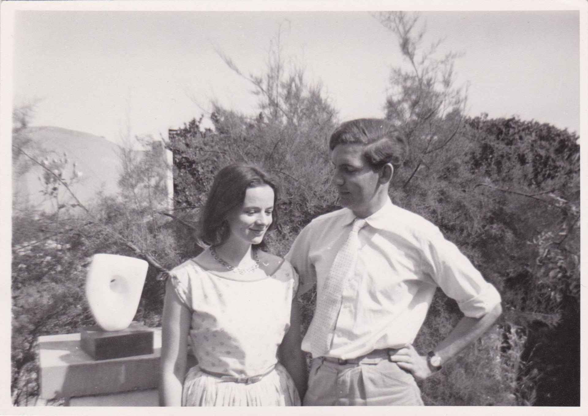 Bowness with his wife Sarah Hepworth-Nicholson in Barbara Hepworth's garden, Trewyn Studio, St Ives, c.1958