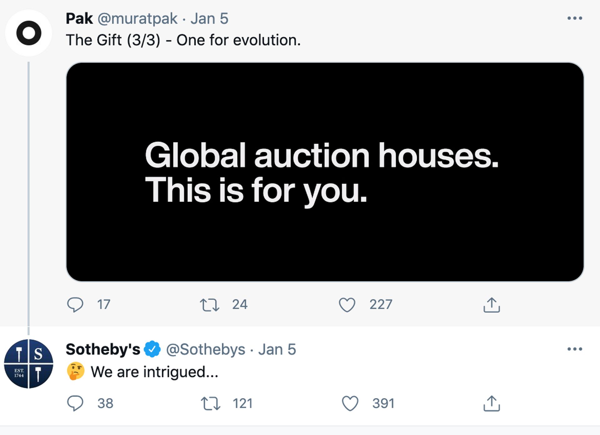 Sotheby’s tweeted in response: “We are intrigued…”