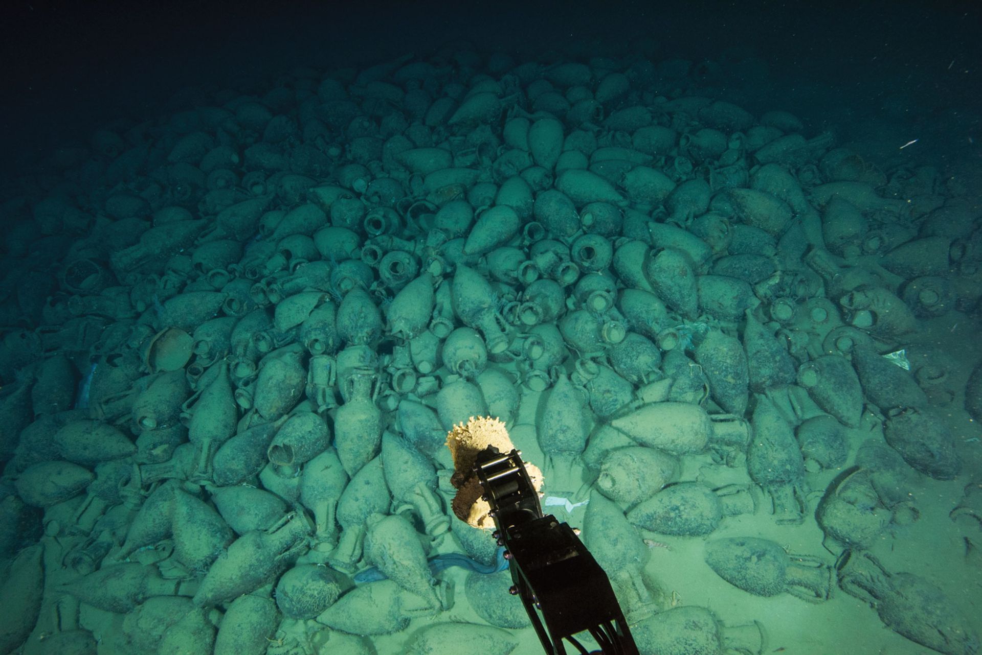 The Capo Sagro 3 wreck (2nd century BC) off the eastern coast of Corsica in the Mediterranean, was surveyed by French archaeologists at a depth of 1,500 feet Photo: Frédéric Osada/DRASSM