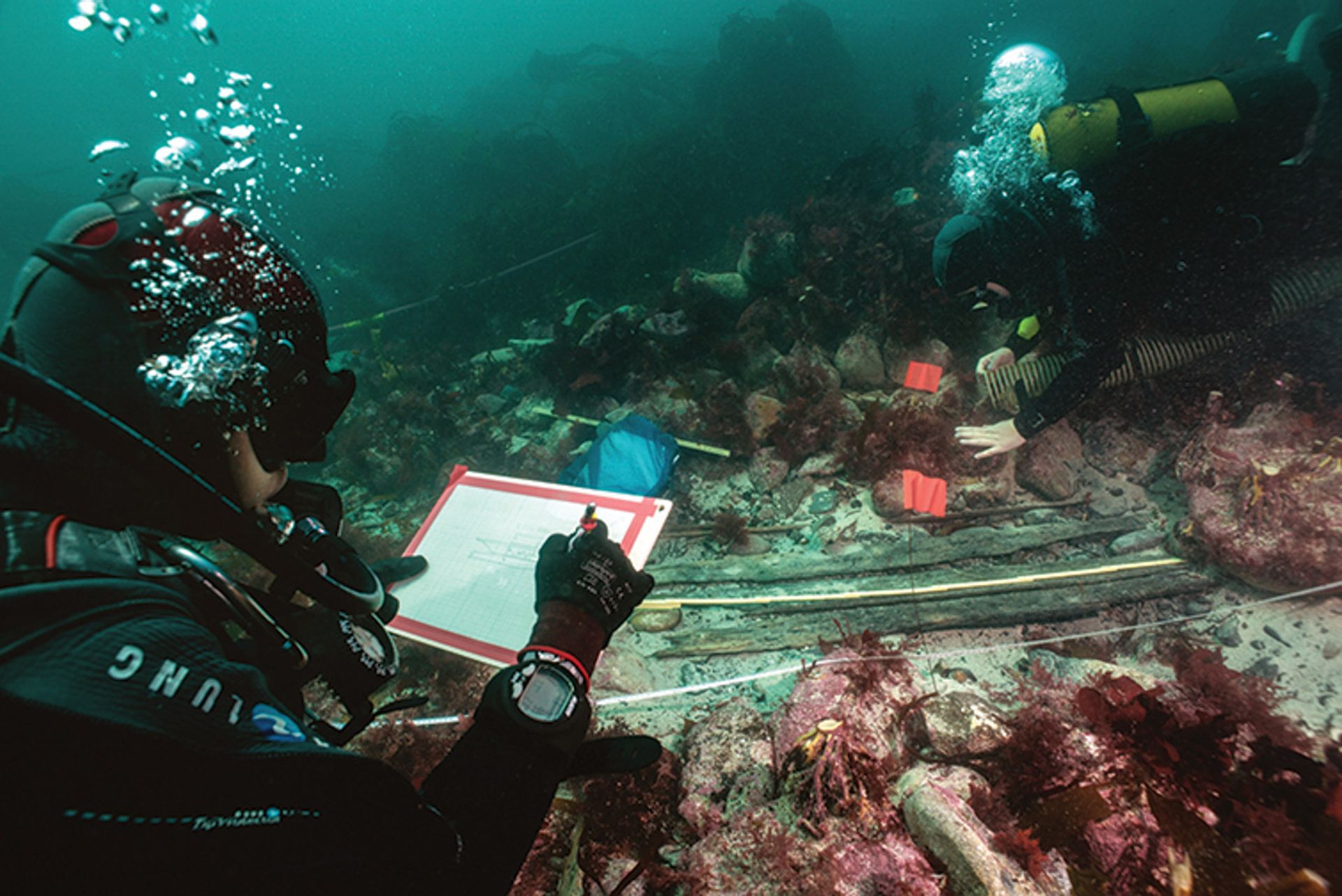 The André Malraux ship during the excavation of the wreck of the Indian, an English ship that sank in December 1817 off the coast of Kerlouan in northwestern France Photo: Teddy Seguin/DRASSM