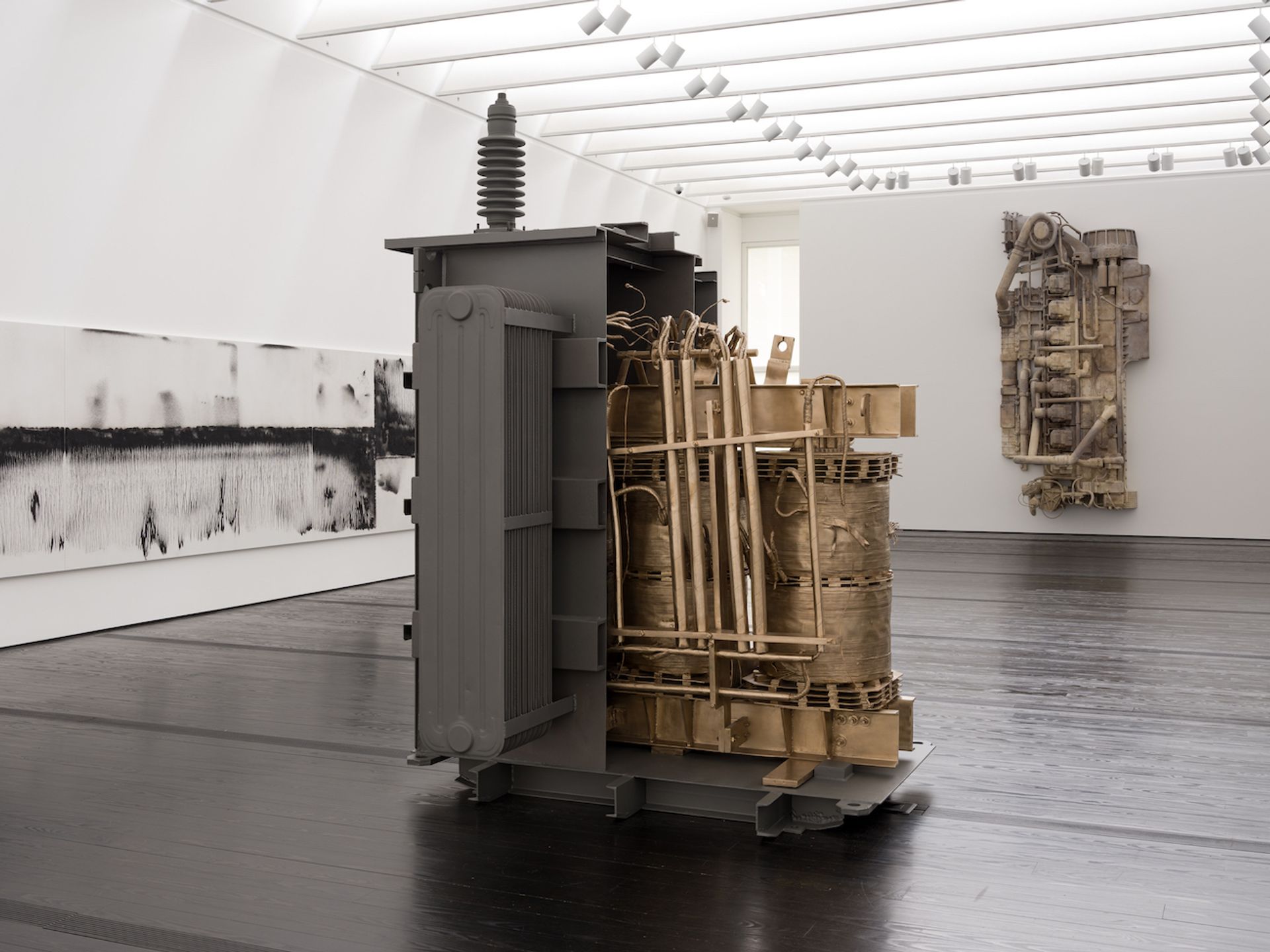 The New York-based composer David Lang collaborated with the artists to produce an eight-hour cycle of sounds that aims to capture the essence of this esoteric state that many might find surprisingly familiar now after a period of simultaneous chaos and inaction caused by the coronavirus pandemic. Scores of instrumental, vocal and electrical sounds are emitted from sculptures like Blackout (all works date from 2020) in the form of a static hum like that made by a volatile power grid. The bronze work was cast from a bisected transformer that exploded in Puerto Rico in 2017 during Hurricane Maria.