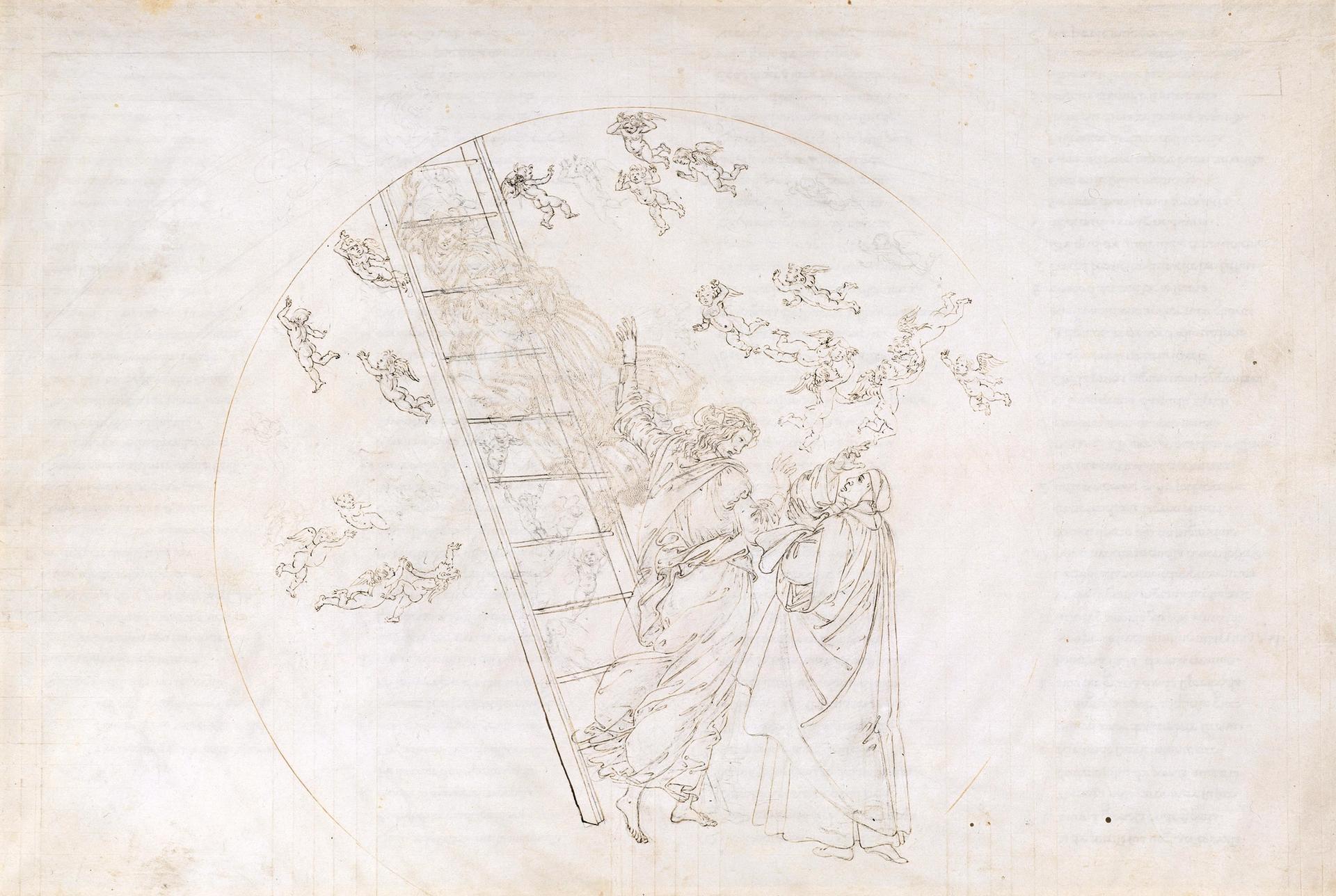 Sandro Botticelli's drawing Jacob’s Ladder for Dante's La Divina Commedia, Paradiso, Canto XXI Courtesy of Staatliche Museen zu Berlin, Kupferstichkabinett