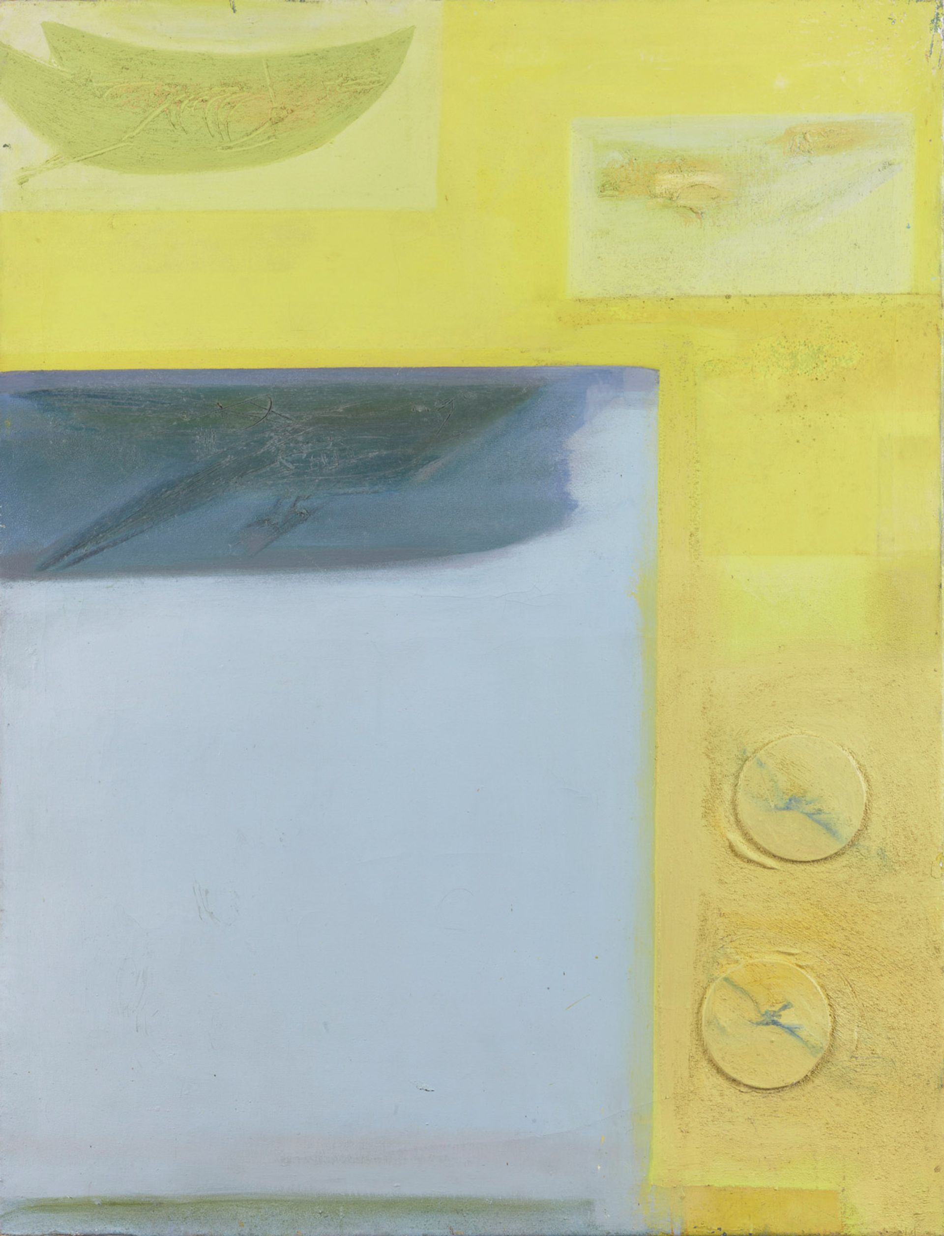 Jacobi’s decision to focus on Rawsthorne’s intellectual influence in the post-war period is perhaps tactical, since very little of her art made before this point remains. In part this can be blamed on her many name changes. Born Isabel Nicholas, after her brief stint as “Margaret Epstein”, she was married first as Delmer, then Lambert before her union with the composer Alan Rawsthorne in 1954. Poverty, precarity and conflict, however, play an even greater role—work was abandoned along with homes and studios, or destroyed in bombardments. Jacobi describes Rawsthorne and Walter Benjamin as “typical during this period of artists whose reflections on the shocks and discontinuities of modern times were themselves preserved only in provisional and discontinuous forms”.