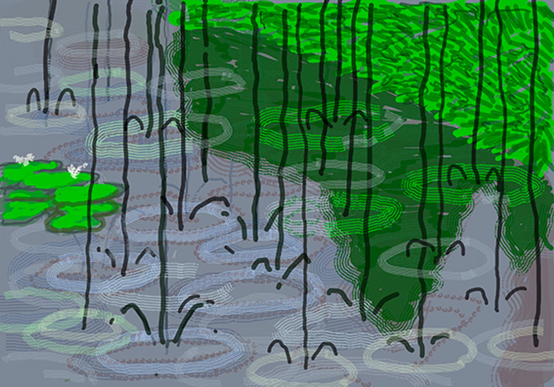 Hockney’s own interest in capturing the effects of water goes back well over half a century. A Bigger Splash (1967), a Californian swimming-pool scene now owned by Tate, remains one of his most popular pictures. Having switched from acrylic paint to an iPad, in his new French home he continues to tackle the challenges of water.