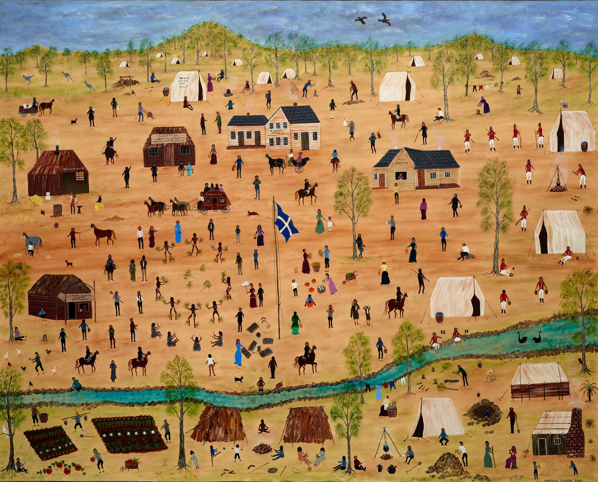 An animation of Wadawurrung elder Marlene Gilson's 2019 painting Ballarat, my country will be projected on the Sydney Opera House hourly from sunset © Marlene Gilson; Photo: AGNSW, Diana Panuccio