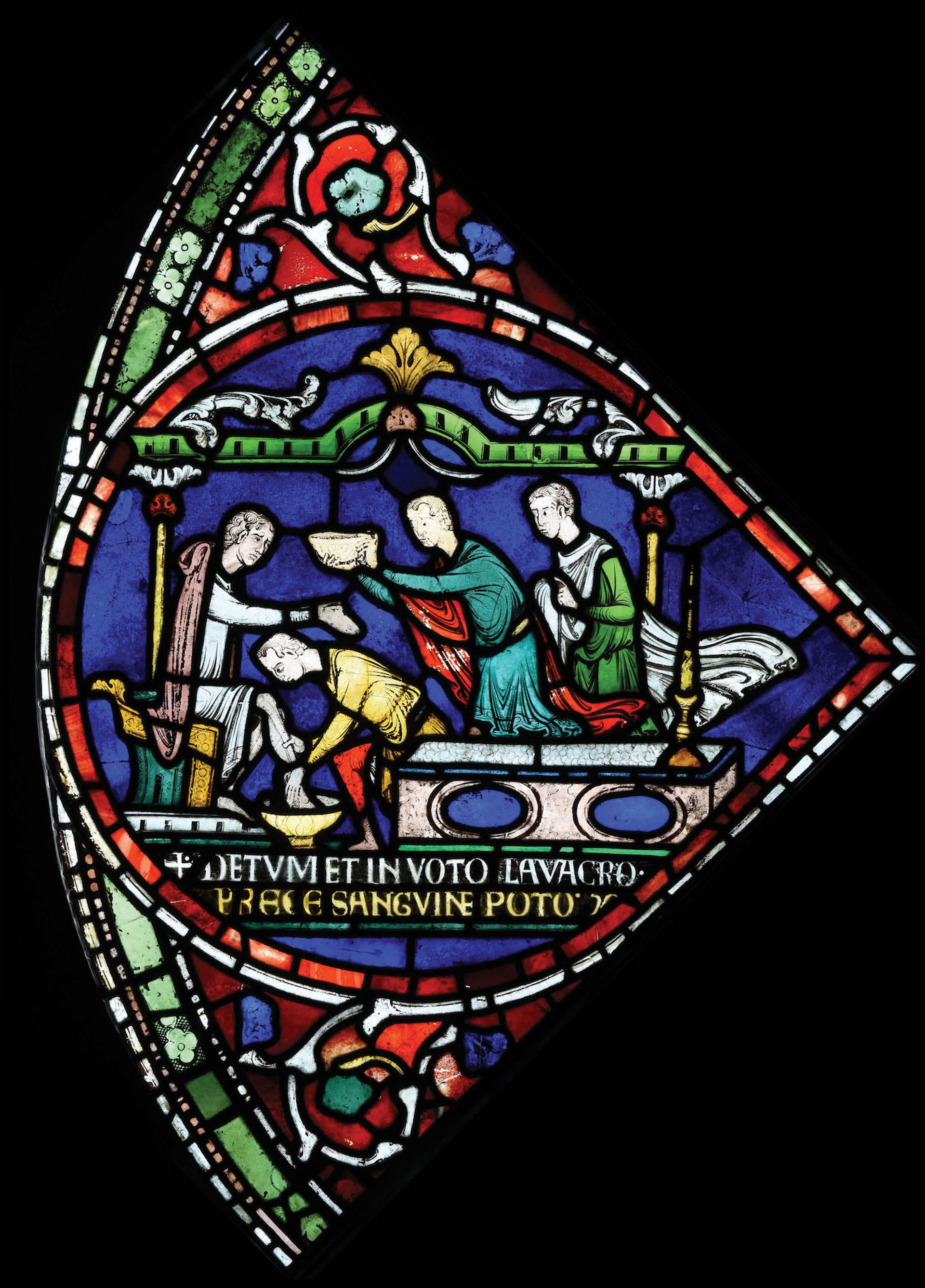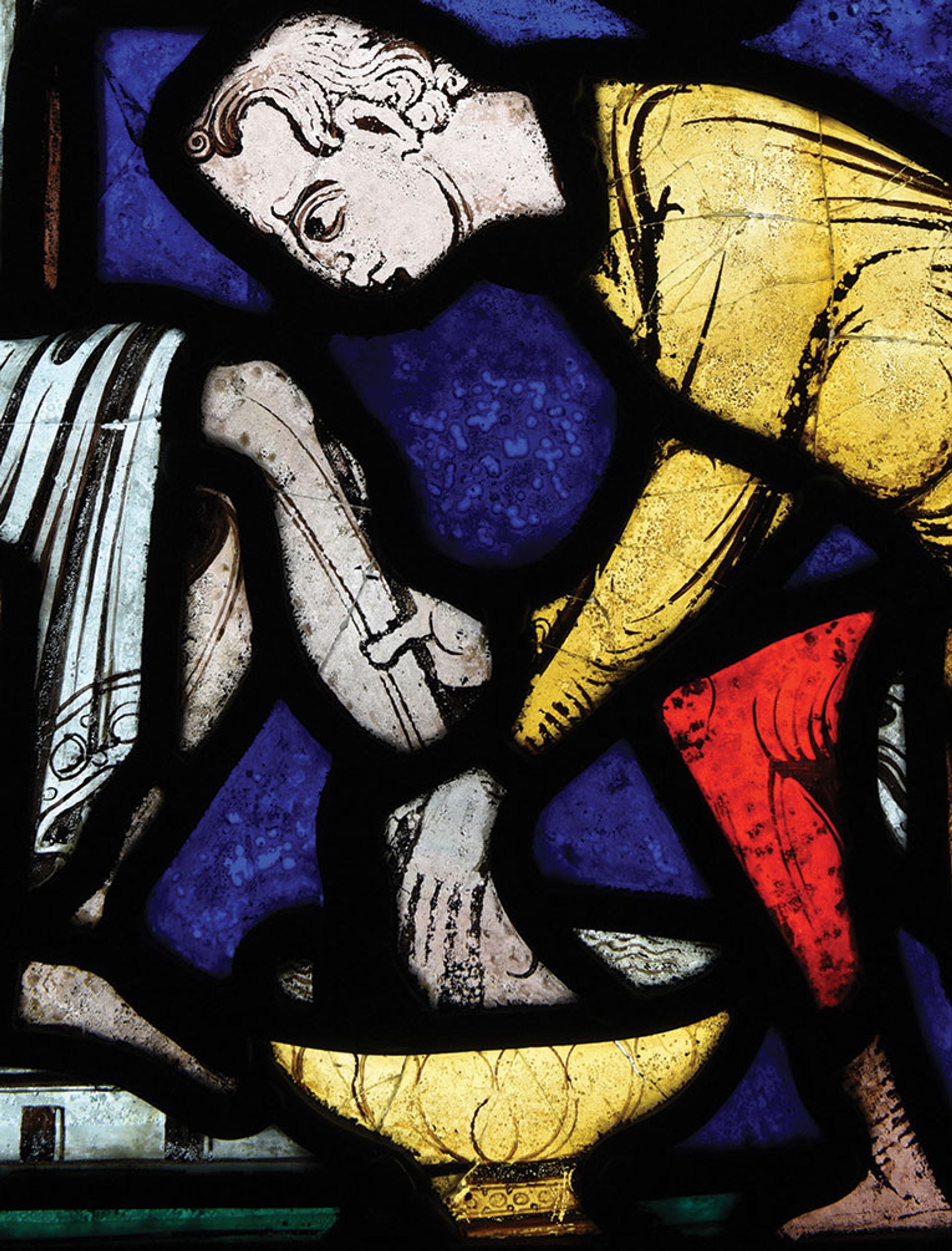 Armed with a microscope and a late 12th-century chronicle, Seliger and Koopmans discerned leprotic spots on a man having his legs washed—distinguishing them from corrosion marks on the glass. He could suddenly be matched to the Latin inscription “lepra” beneath a figure on horseback in another part of the window. So emerged the story of the healing of Ralph de Longeville, recorded in 1171-72 by a monk, Benedict of Peterborough, whose exhaustive account of St Thomas’s miracles is being translated by Koopmans.