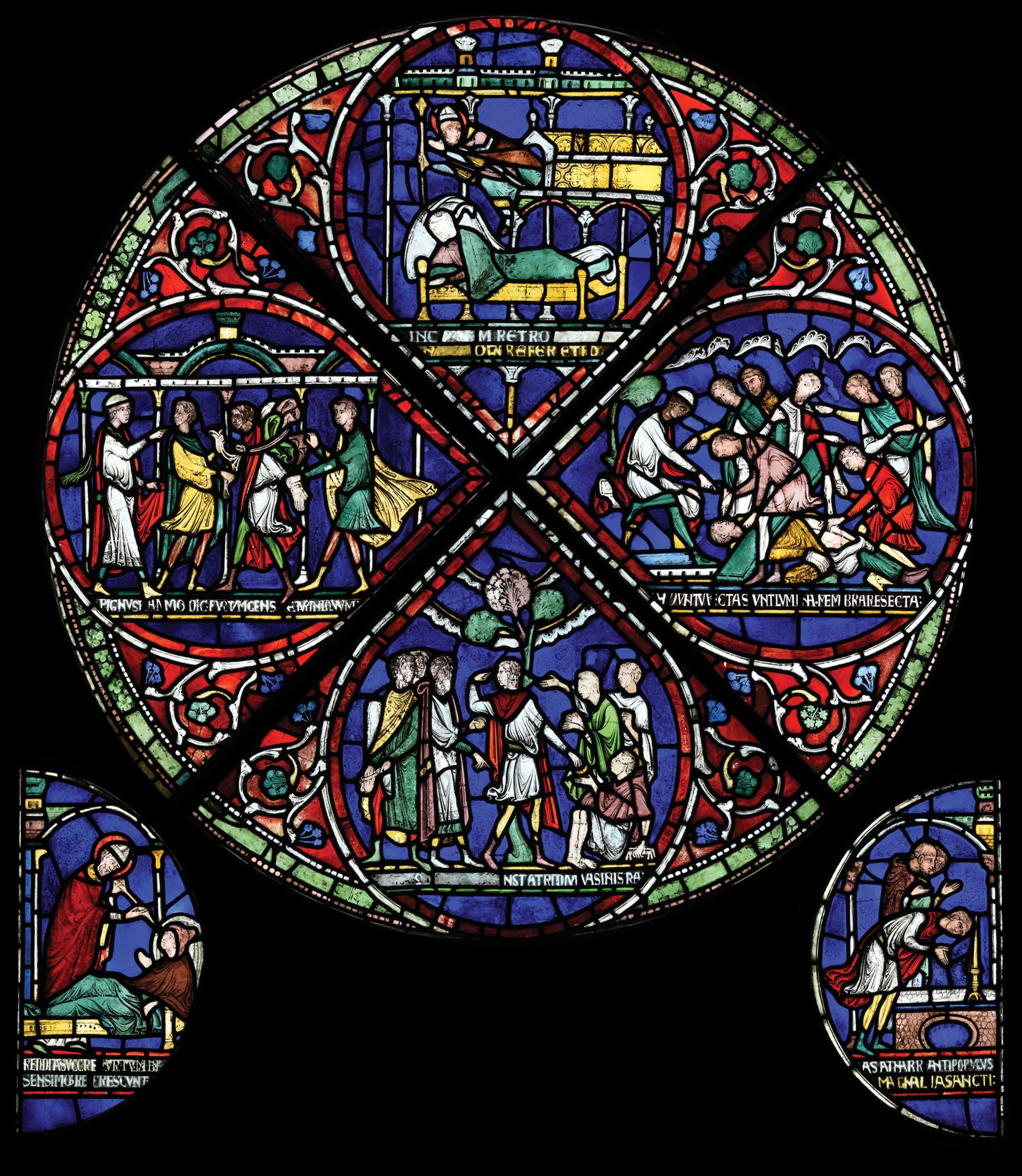 The sender was Leonie Seliger, the glass conservator of Canterbury Cathedral, who had discovered leprosy spots on a figure depicted on the cathedral’s 12th- and 13th-century Miracle Windows. The recipient was Rachel Koopmans, a medieval historian at York University in Toronto, with whom Seliger is studying the windows’ graphic motifs. Together they are finally identifying the original narrative order of the stained glass, unravelling stories from the years after Thomas Becket, the Archbishop of Canterbury, was murdered in the cathedral by knights of King Henry II in 1170.