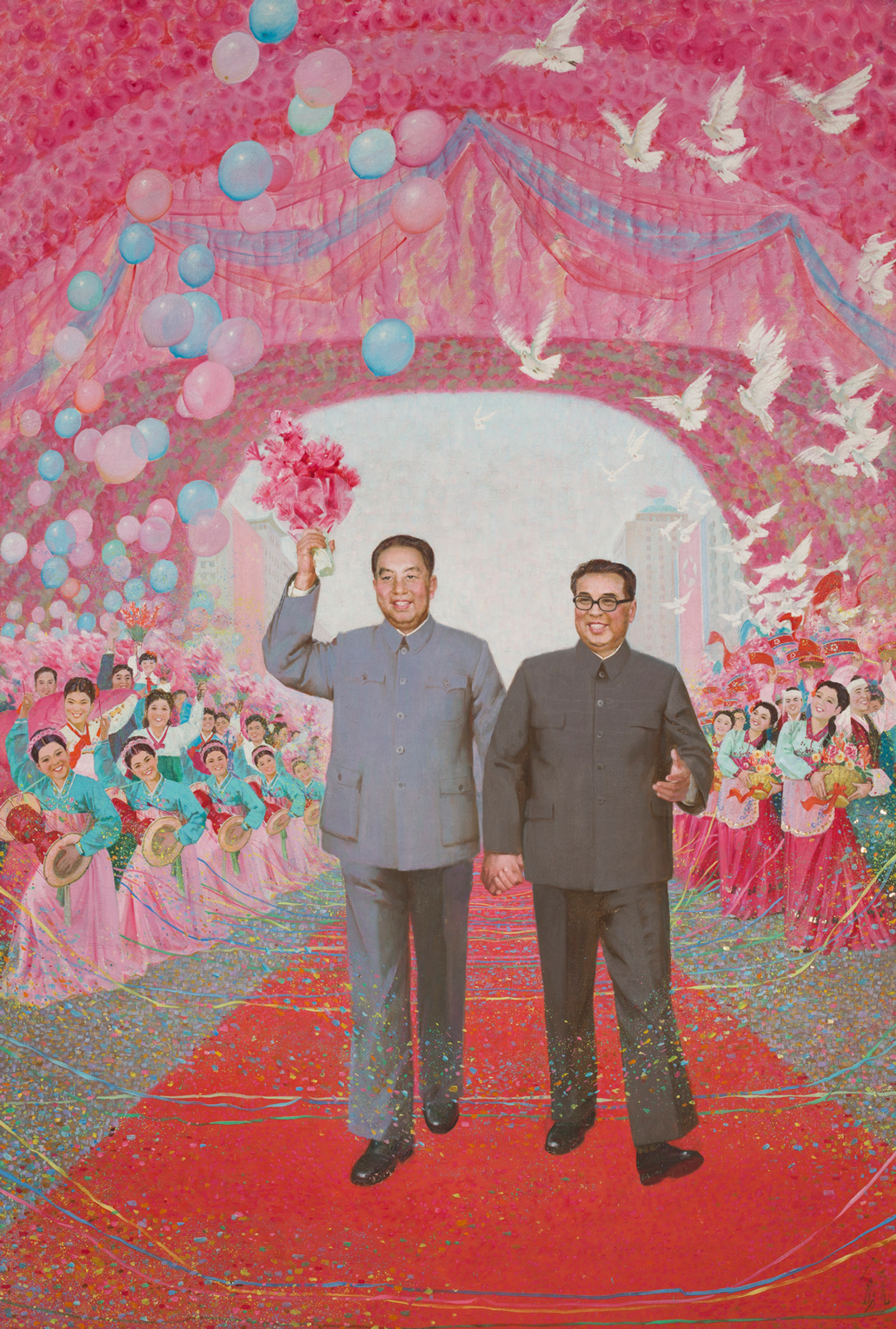 The Swiss art collector Uli Sigg first visited North Korea in the 1980s as an employee of the Schindler Elevator Corporation. In 1995 he became the Swiss ambassador there, and was the only foreign art collector permitted to purchase works portraying the regime’s leaders, among them a painting of Kim Il Sung and Kim Jong Il in front of their country’s rocket arsenal.