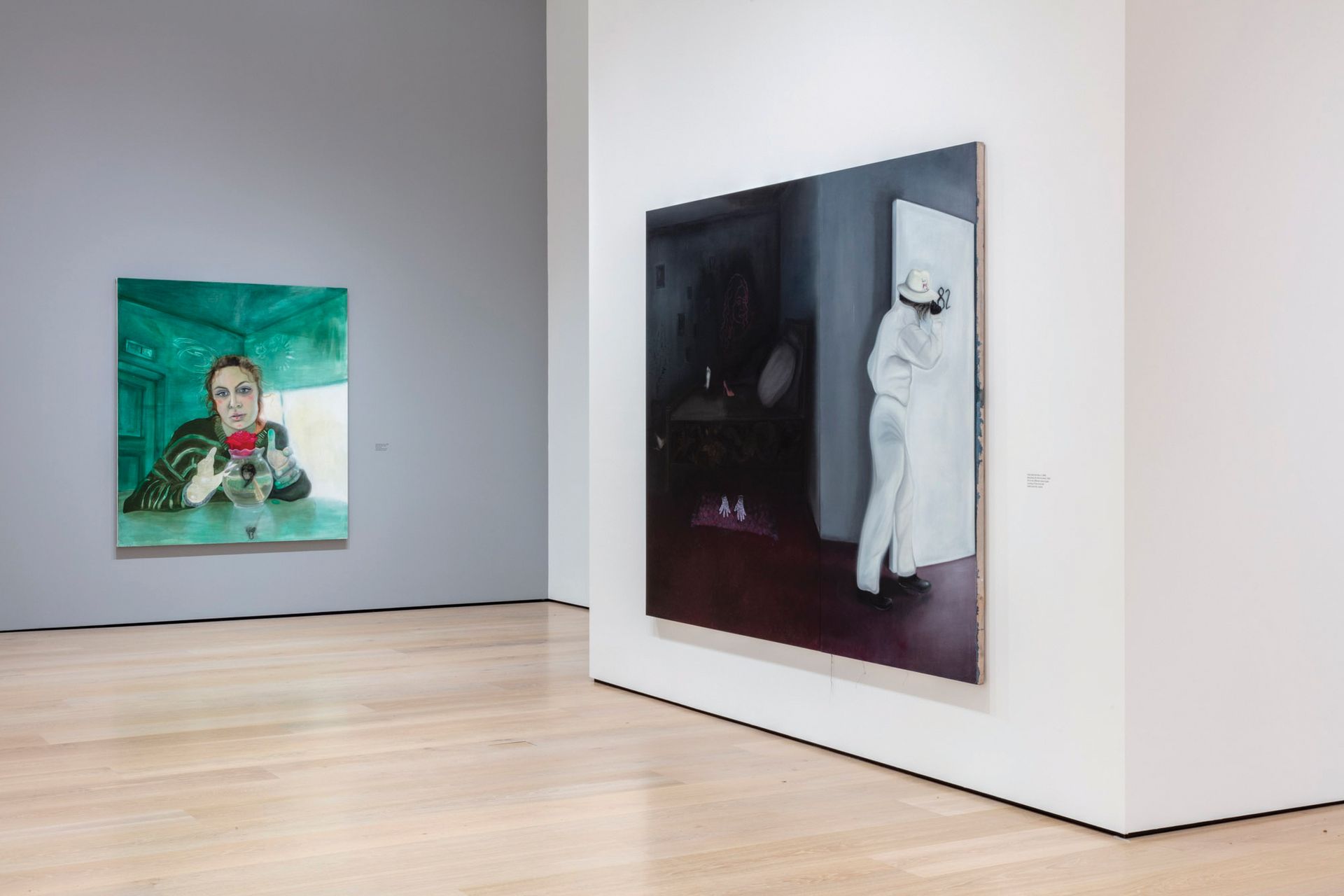 Katja Seib, Mona Lisa's Smile (left, 2020); Bang bang (he shot me down) (right, 2020). Installation view, Hammer Museum Installation view, Made in L.A. 2020: a version, Hammer Museum, Los Angeles. Photo: © Joshua White / JWPictures.com