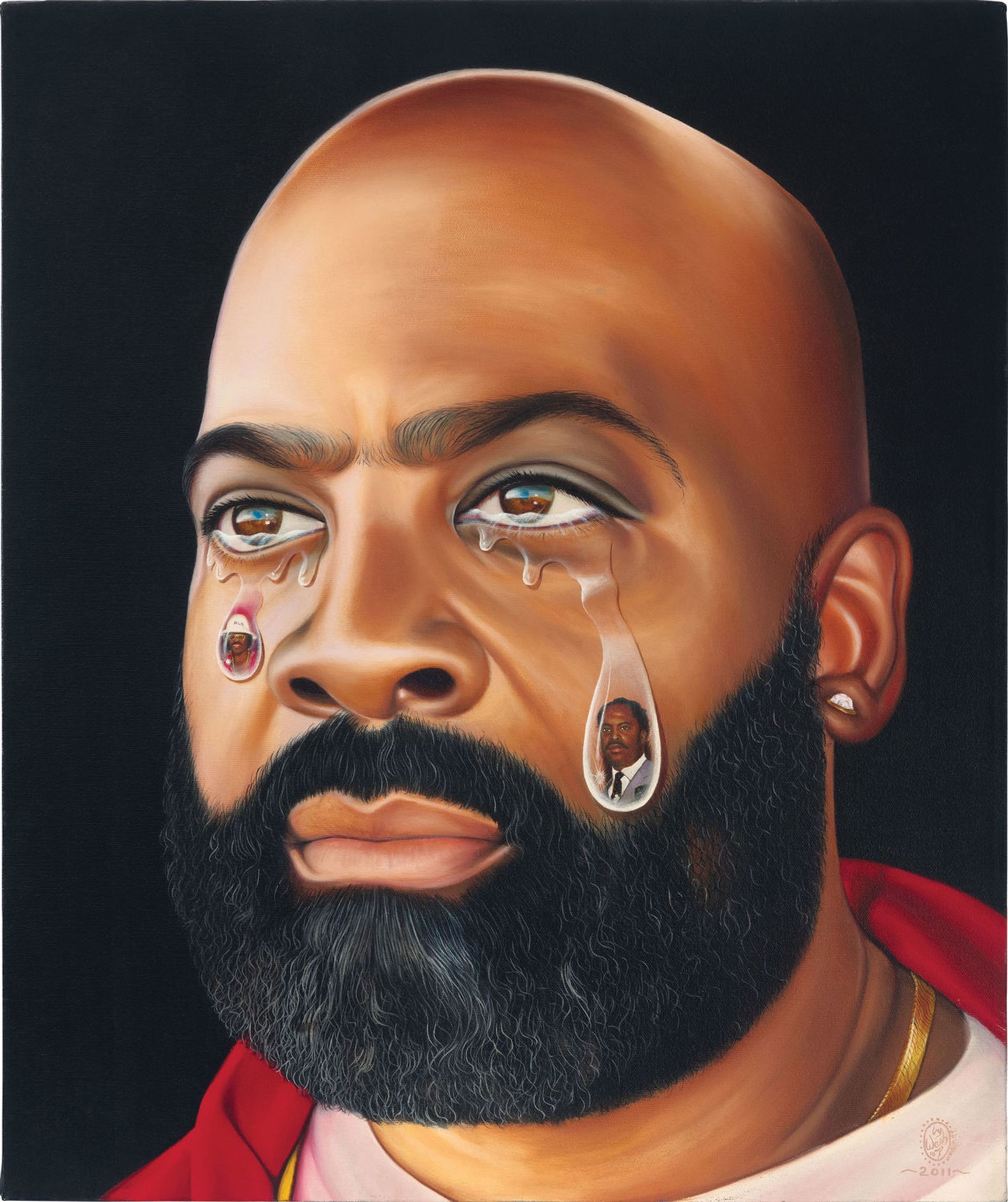 Seib has large paintings at the Hammer and smaller canvases at the Huntington, which is fairly typical of how the show plays out across the two venues. But some artists put the Huntington’s permanent collection to interesting use, such as Buck Ellison situating one of his photographic portraits of New England, prep school-worthy white privilege alongside 18th-century American art and mahogany furniture.