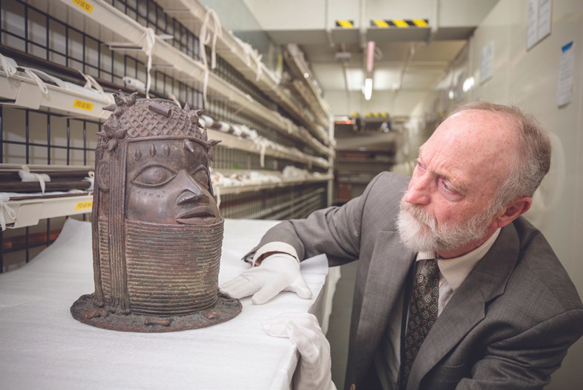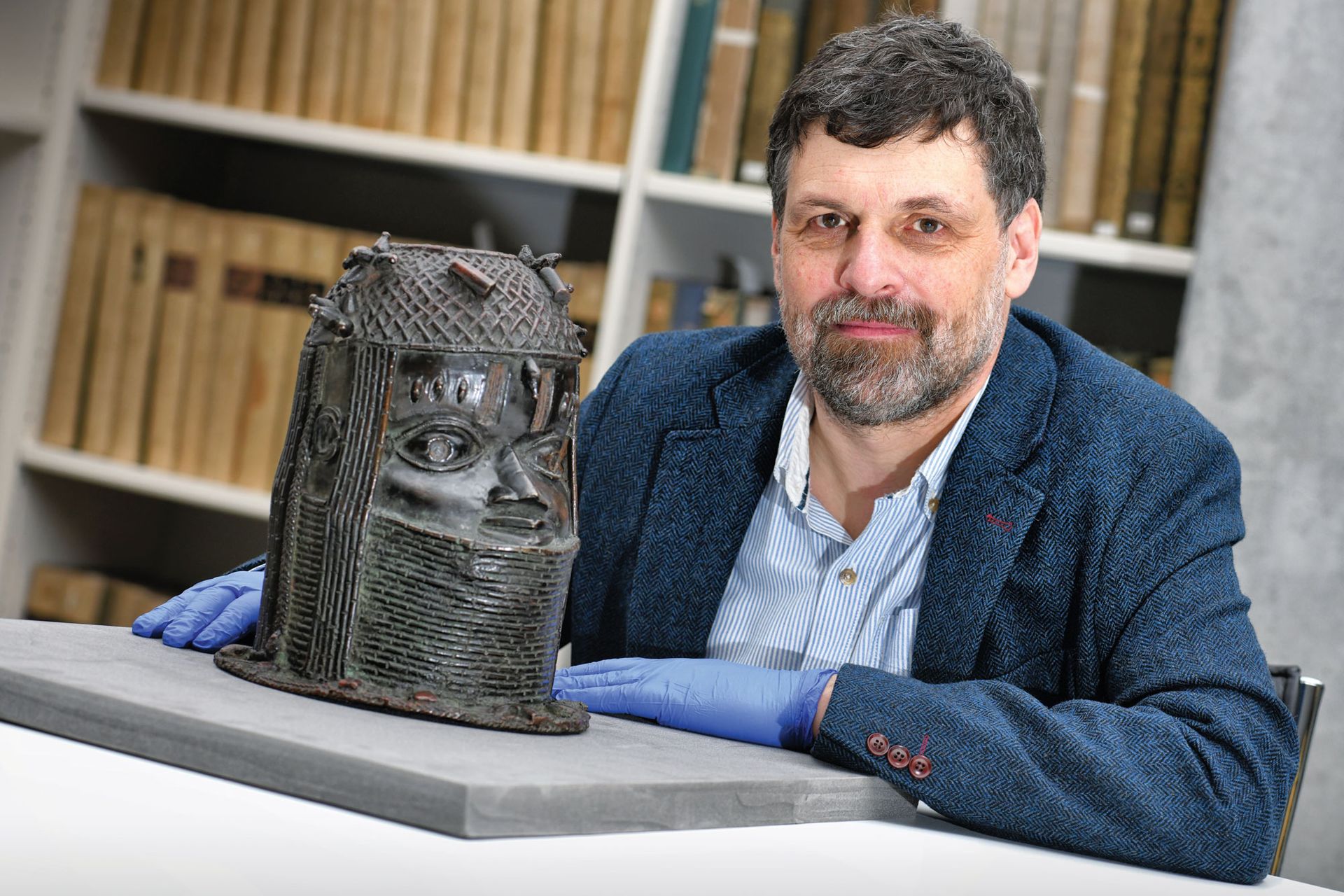 Neil Curtis, head of museums and special collections at the University of Aberdeen, recently announced the repatriation of its bronze sculpture depicting an Oba (king) of Benin © University of Aberdeen